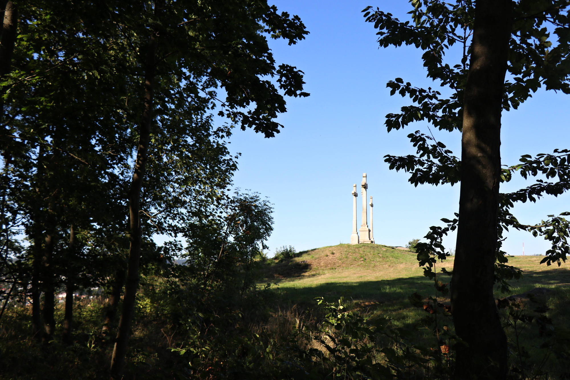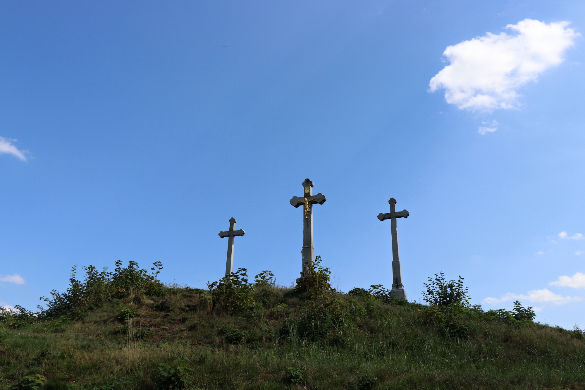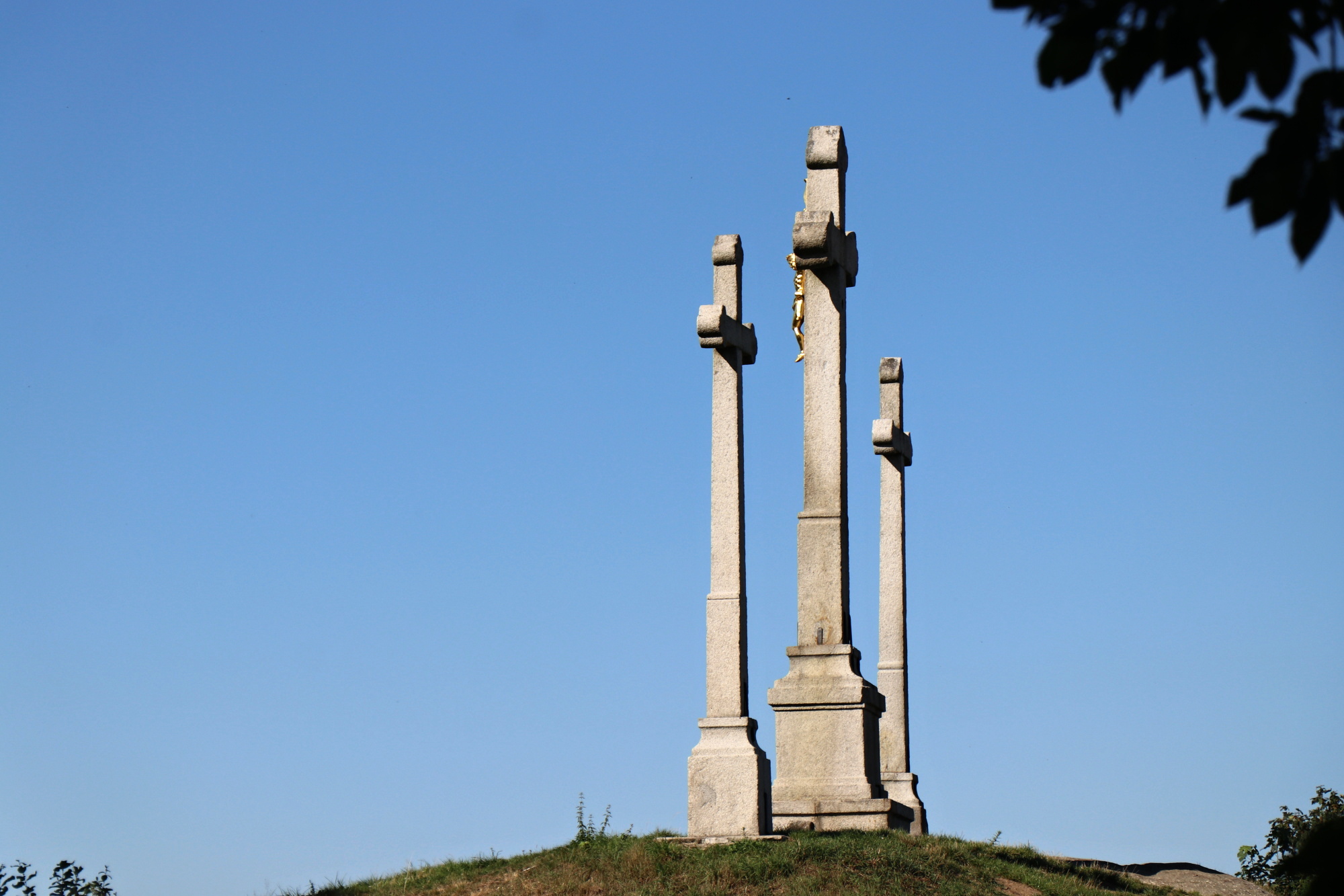 Tři kamenné kříže jsou novoměstskou dominantou od roku 1832. Nahradily stávající kříže dřevěné, které byly v roce 1680 vztyčeny na místě zbourané dřevěné kaple. K ní se váže pověst, že byla v patnáctém století postavena jako poděkování za to, že bylo město uchráněno před morovou epidemií.