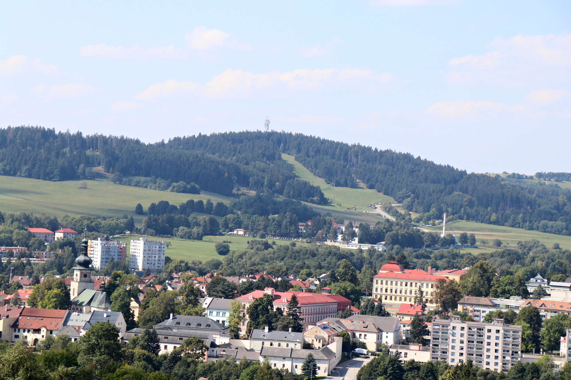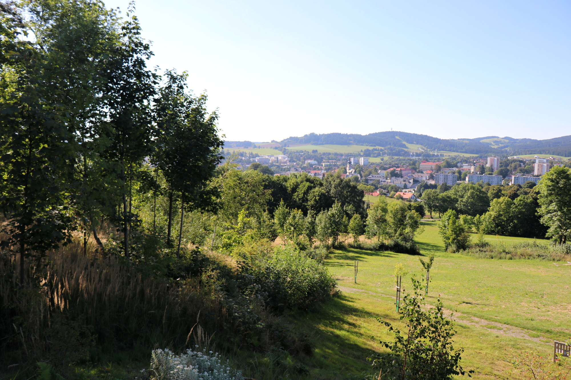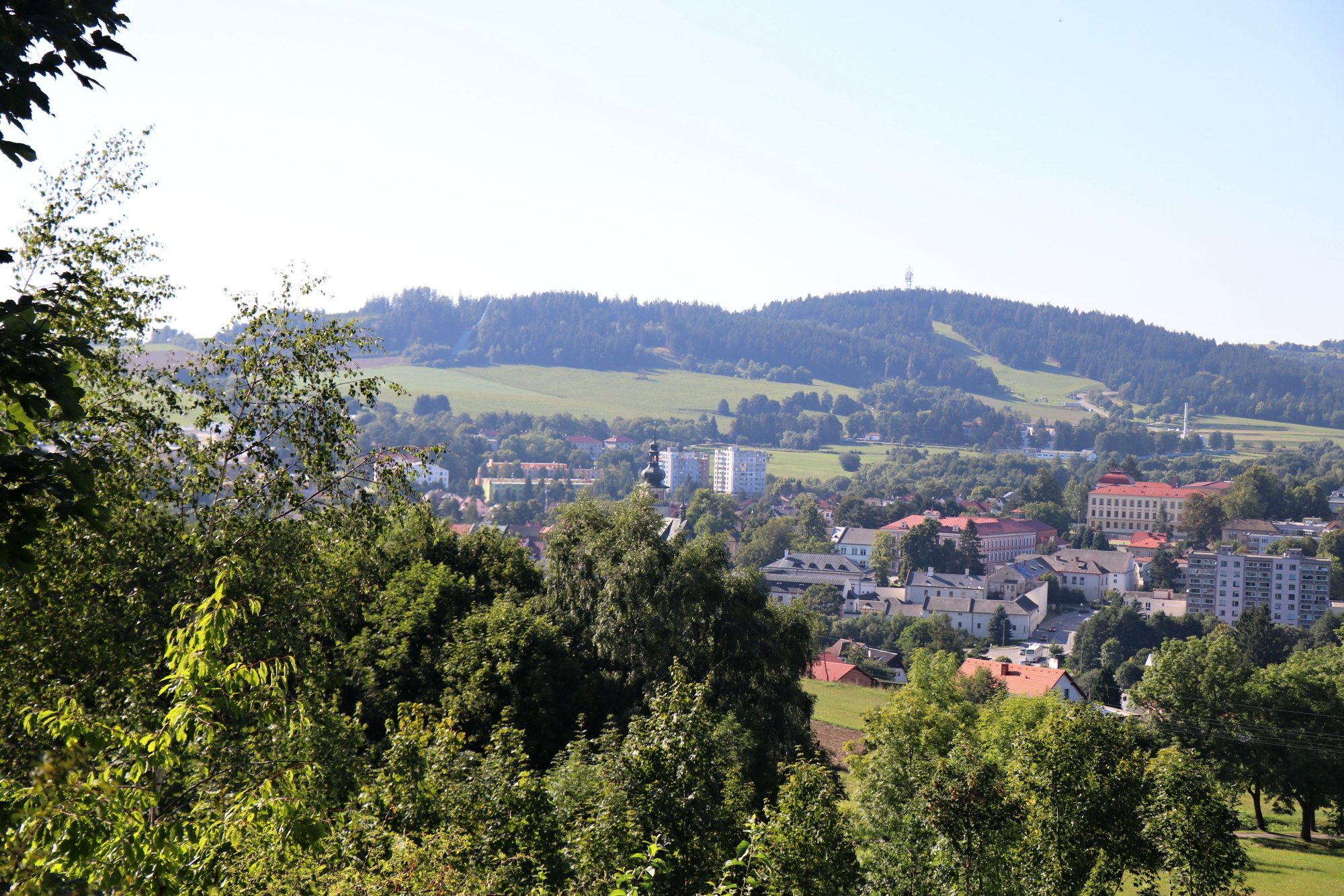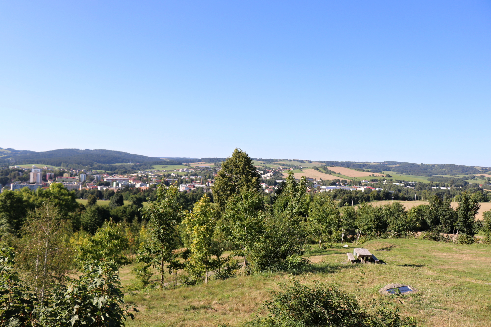 Harusův kopec, skokanské můstky na Šibenici, poslední ze tří studnických stožárů, katolický i evangelický kostel, historická budova gymnázia, nemocniční areál, Pohledec – to vše i mnoho dalšího skýtá výhled od Tří křížů tyčících se na vrcholu novoměstské Kalvárie, dříve Kapliska.