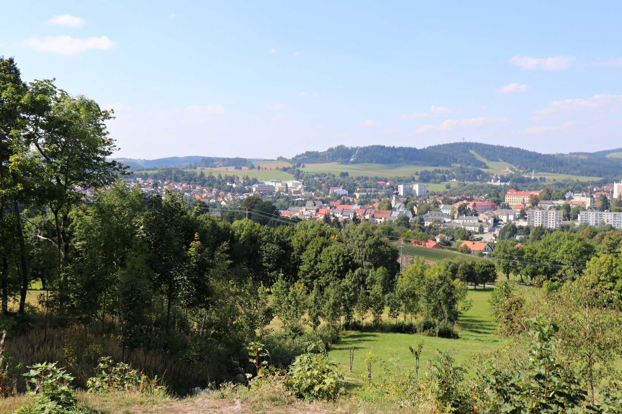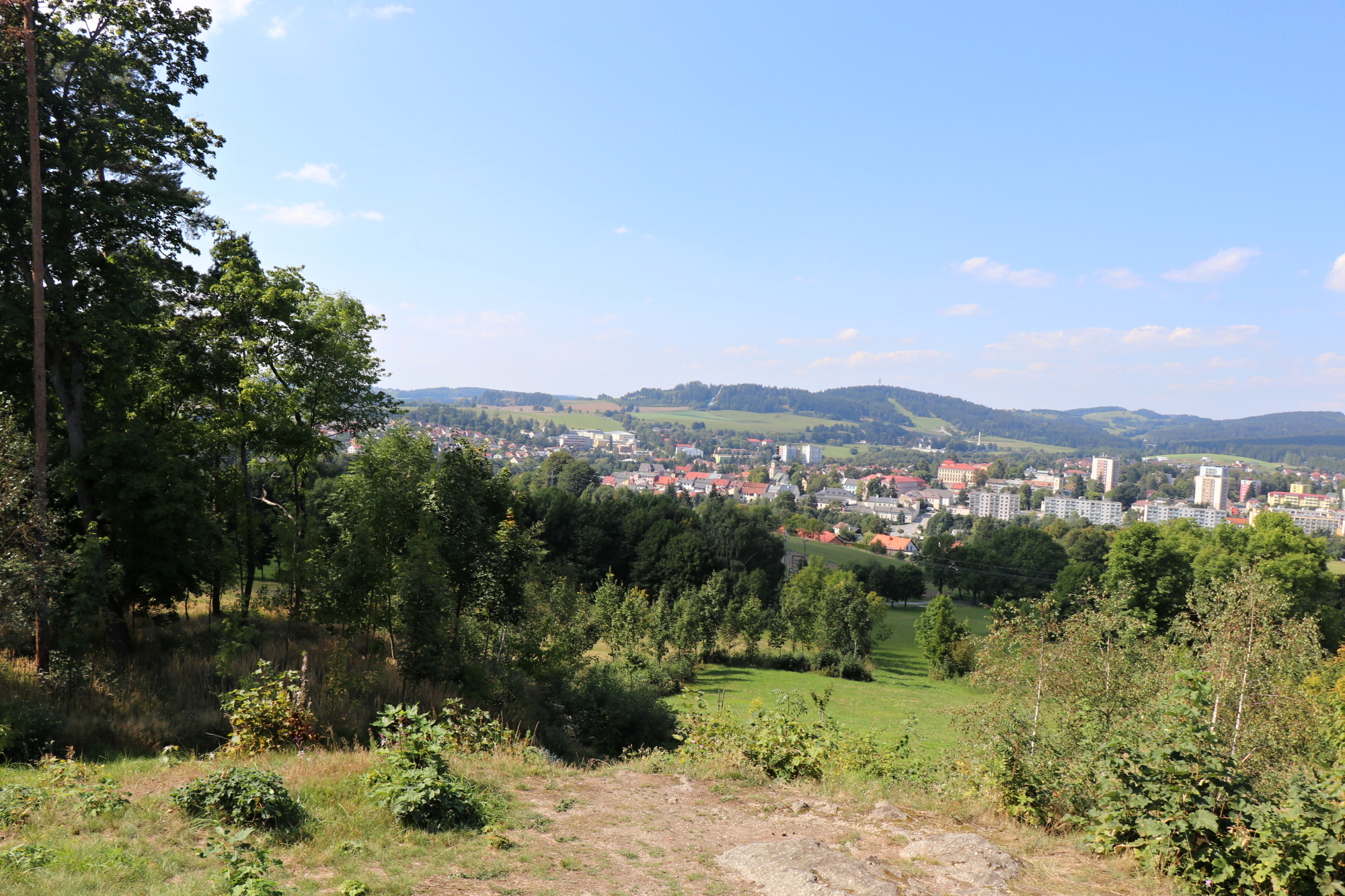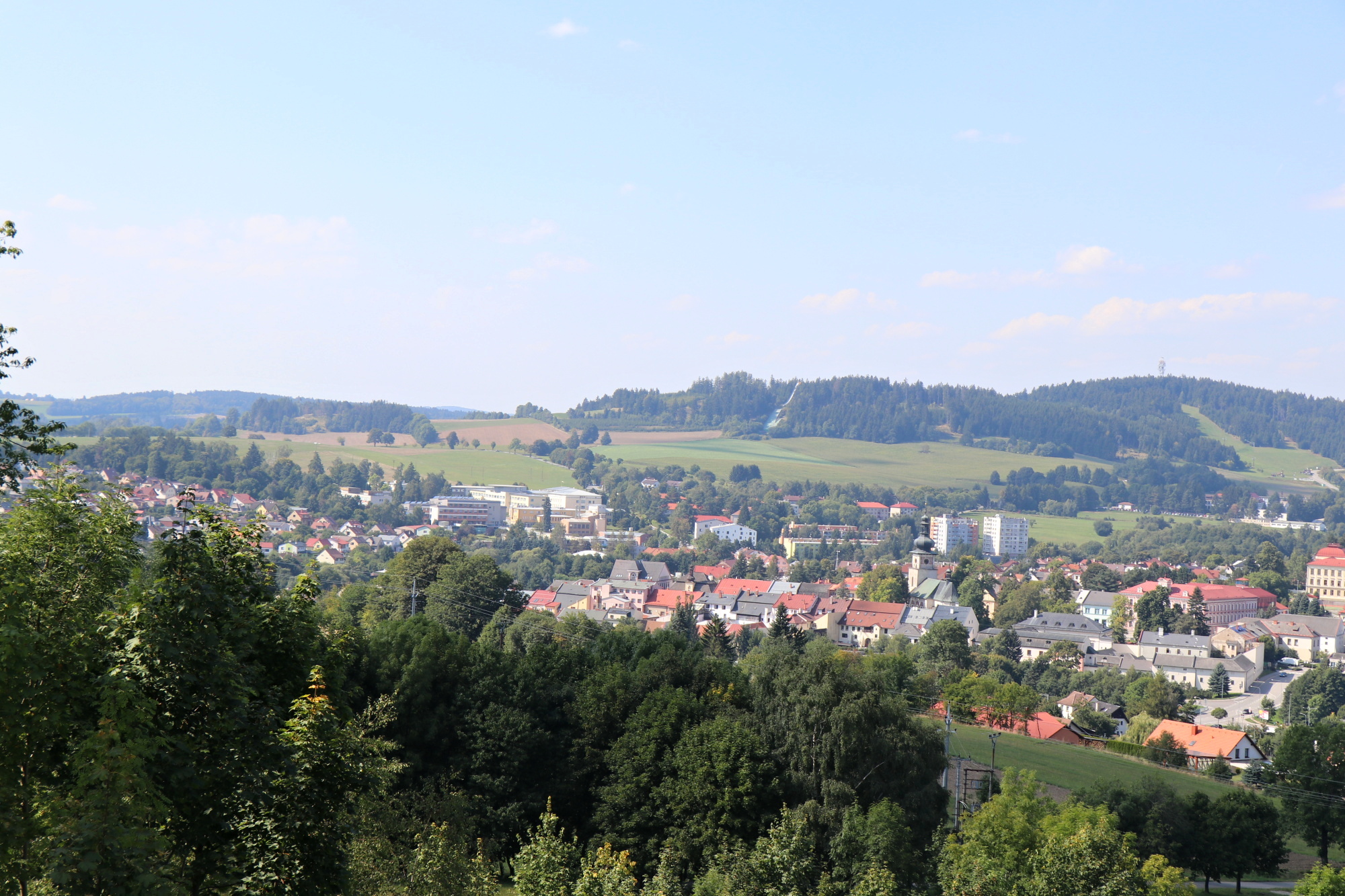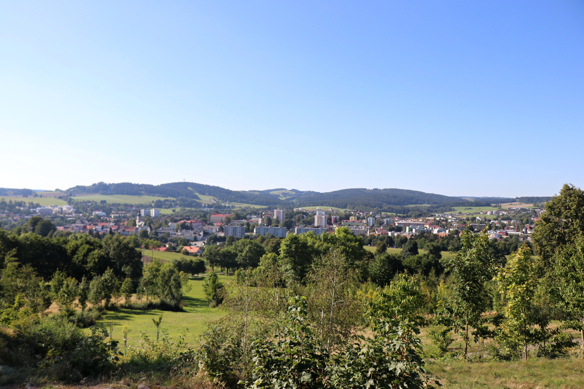 Harusův kopec, skokanské můstky na Šibenici, poslední ze tří studnických stožárů, katolický i evangelický kostel, historická budova gymnázia, nemocniční areál, Pohledec – to vše i mnoho dalšího skýtá výhled od Tří křížů tyčících se na vrcholu novoměstské Kalvárie, dříve Kapliska.