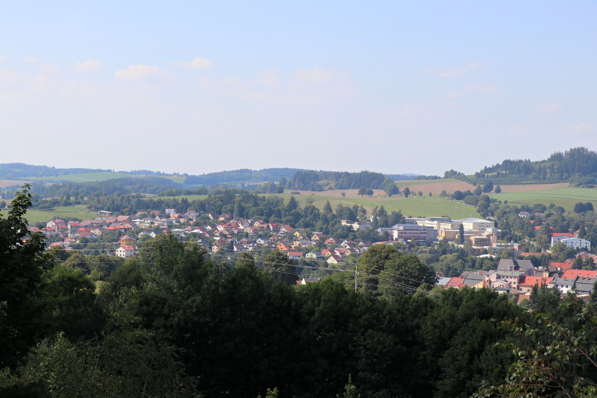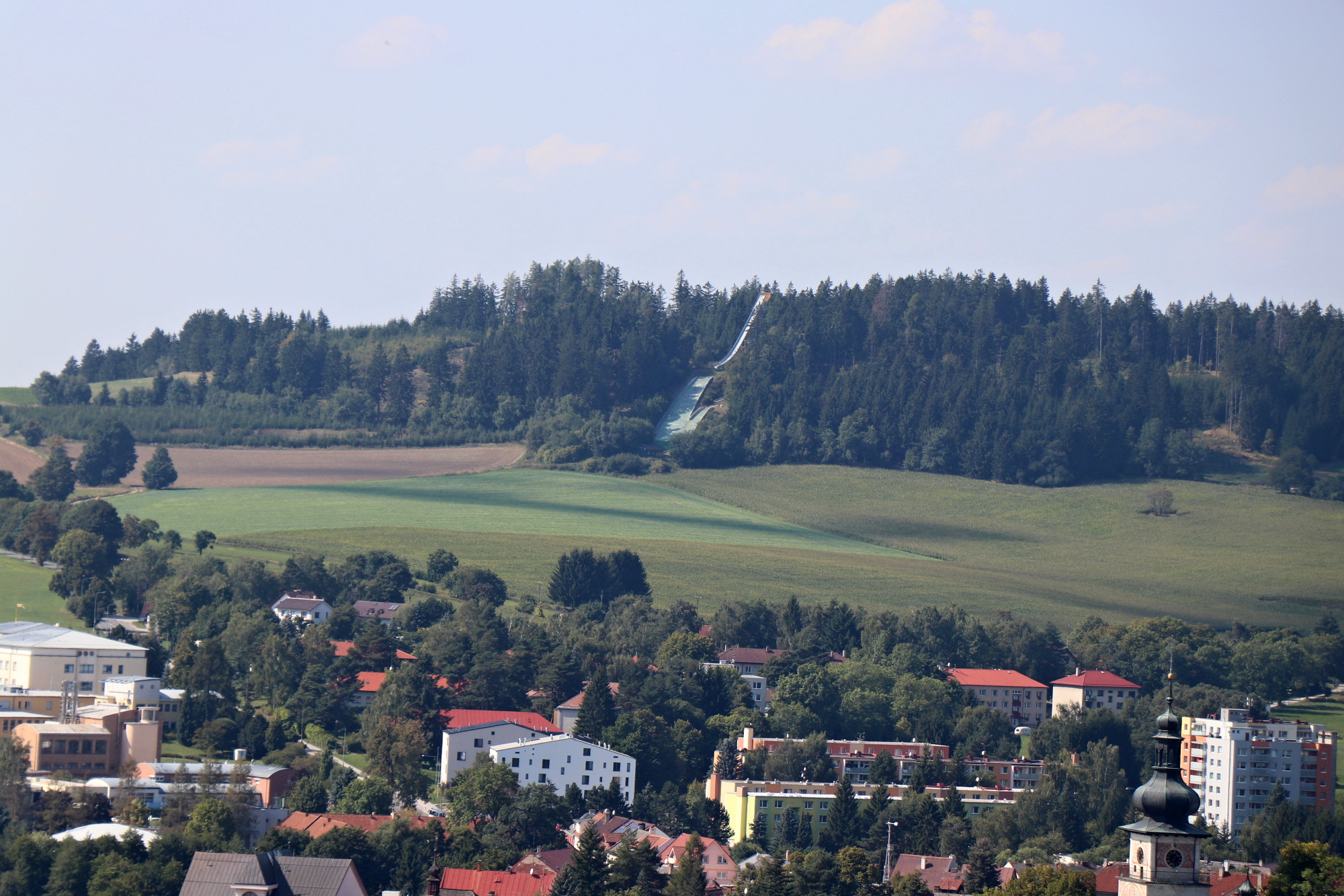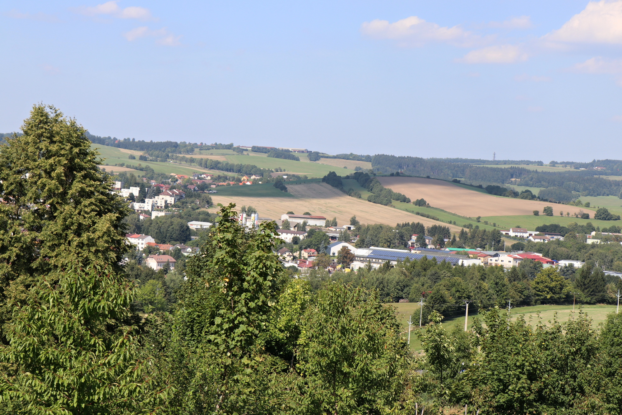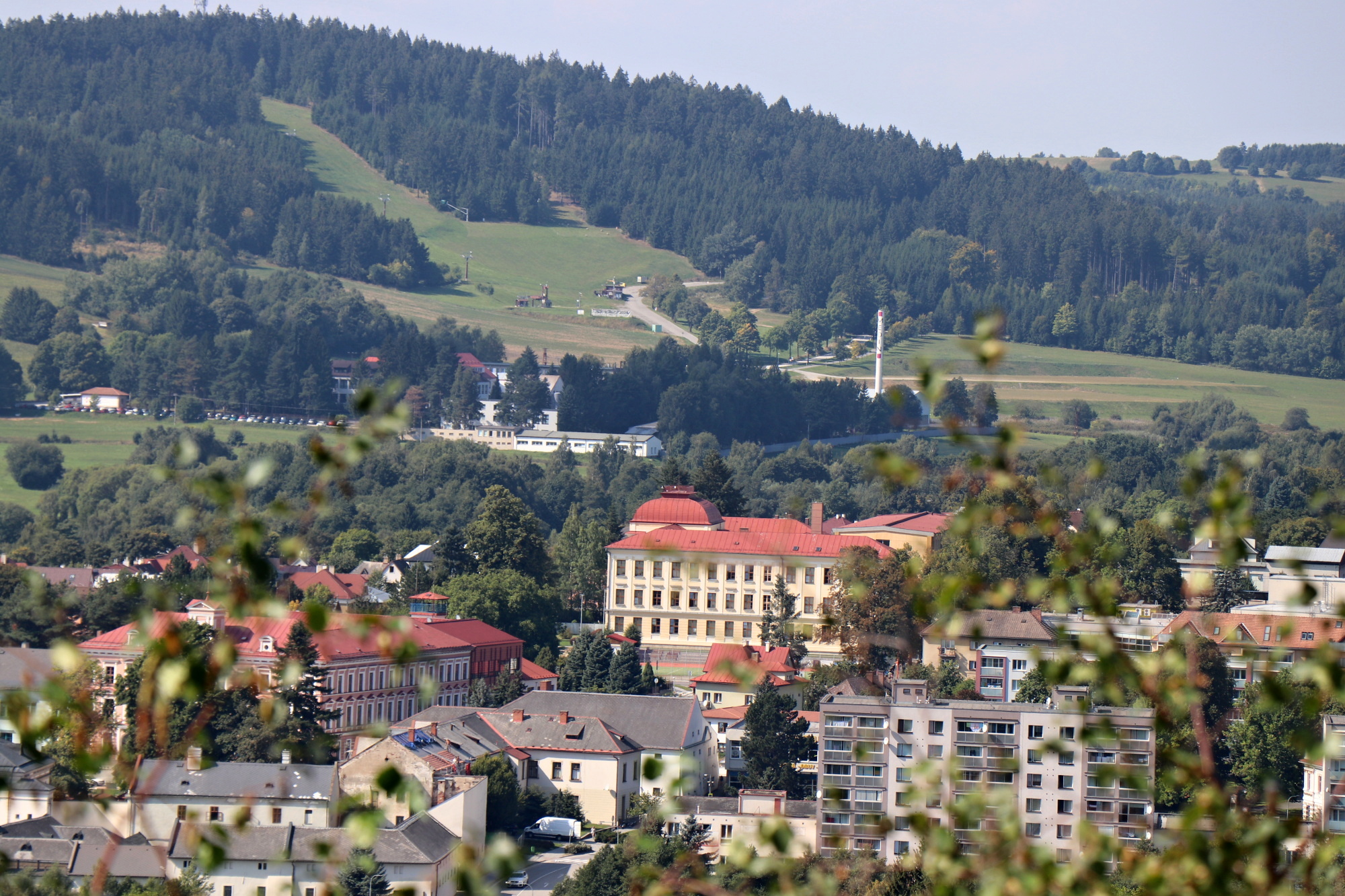 Harusův kopec, skokanské můstky na Šibenici, poslední ze tří studnických stožárů, katolický i evangelický kostel, historická budova gymnázia, nemocniční areál, Pohledec – to vše i mnoho dalšího skýtá výhled od Tří křížů tyčících se na vrcholu novoměstské Kalvárie, dříve Kapliska.