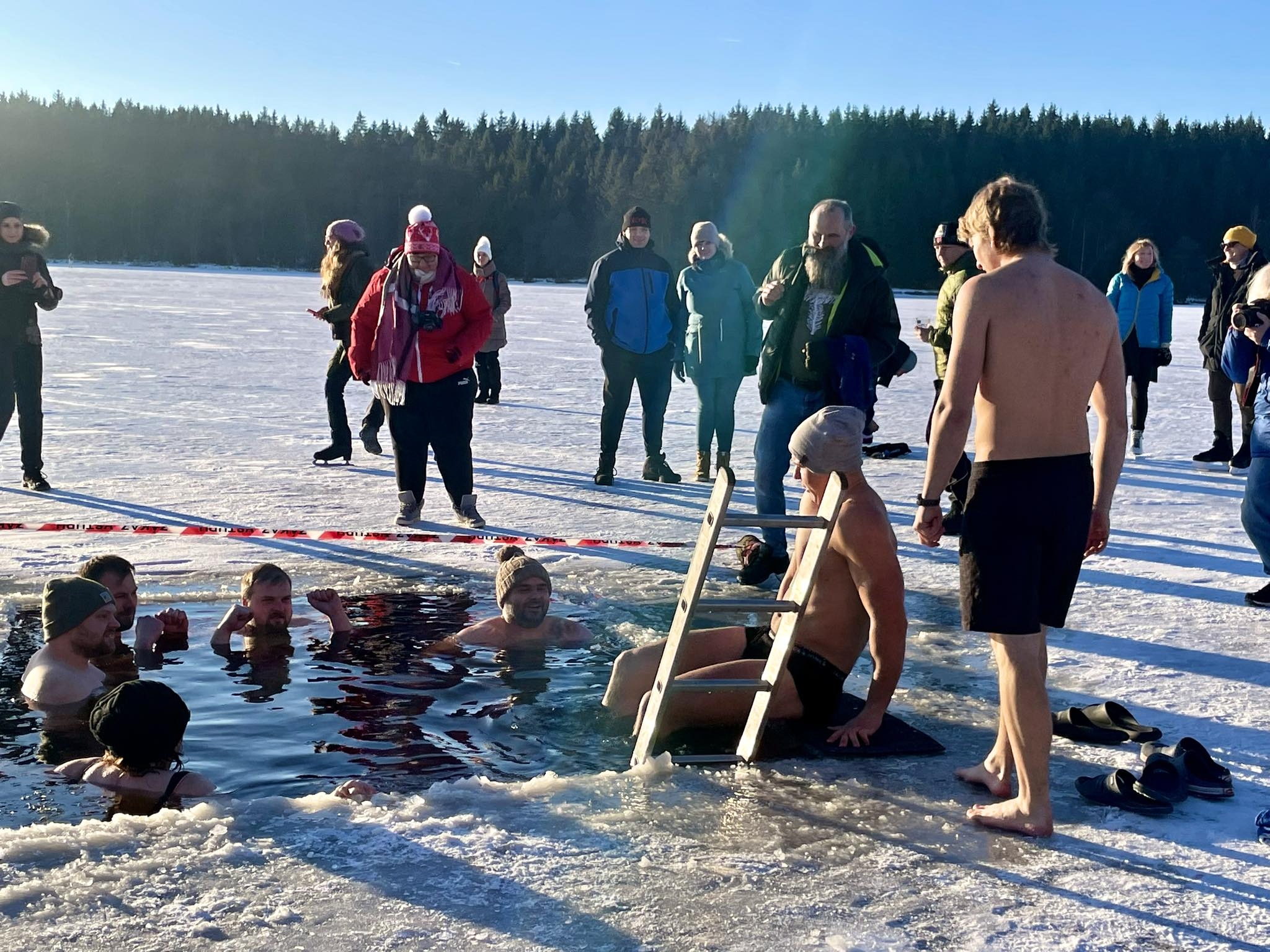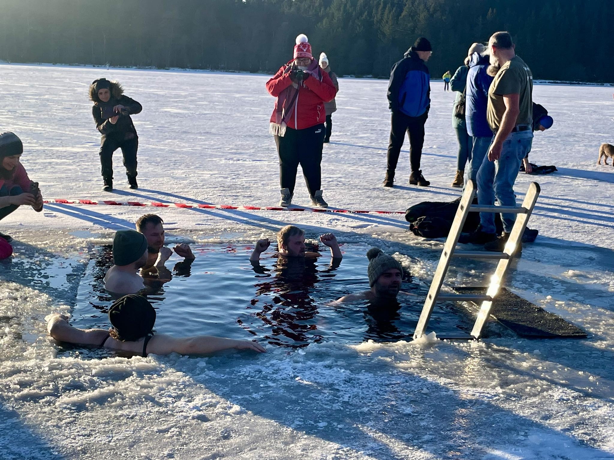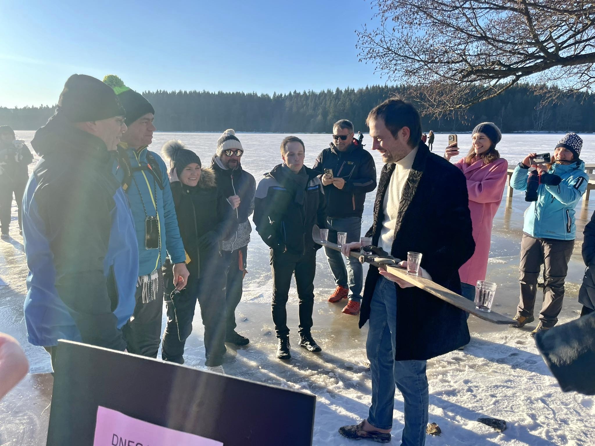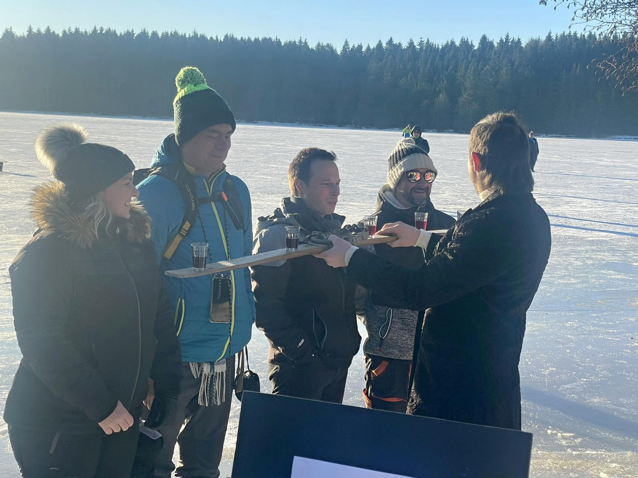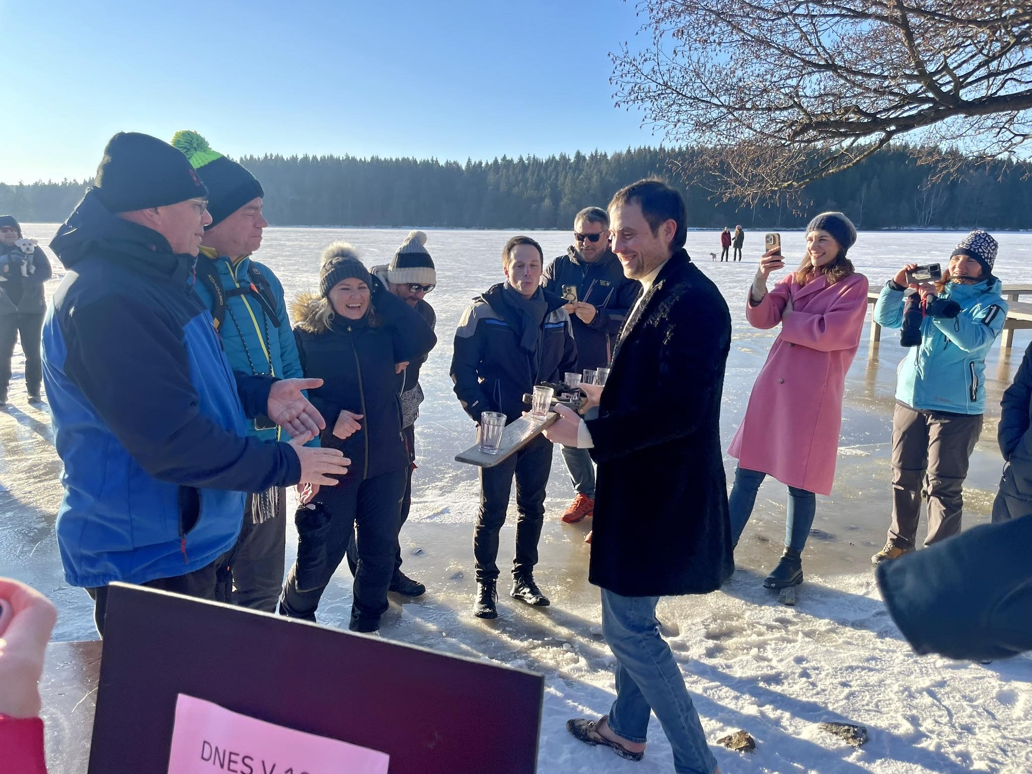 Přestože do ledové vody vlezlo jen pár nadšenců, novinkou, kterou byl nový borůvkový likér Mertilus, nepohrdl nikdo. Slavnostní degustaci stejně jako koupací akci pro návštěvníky připravil Hotel Medlov.