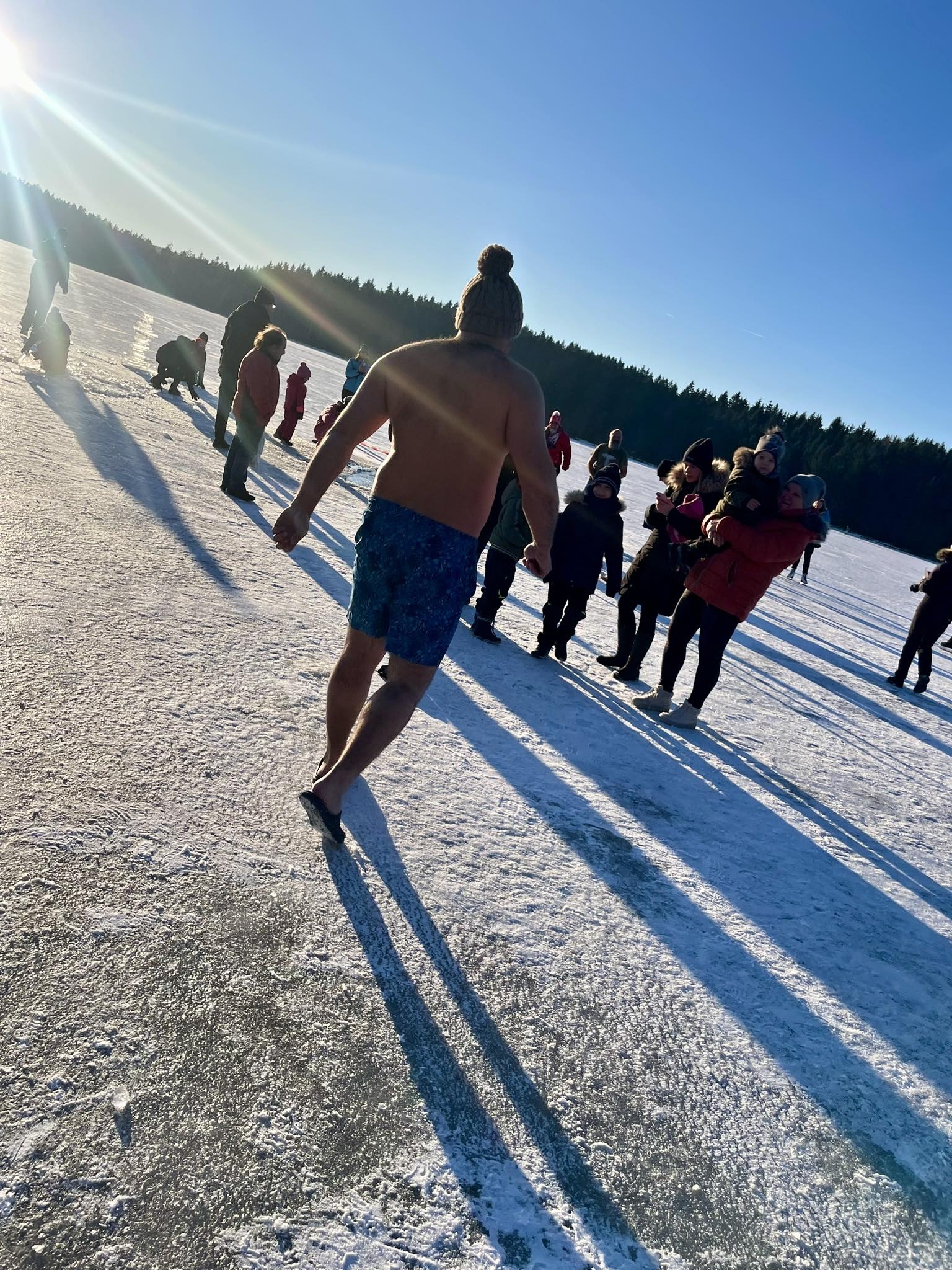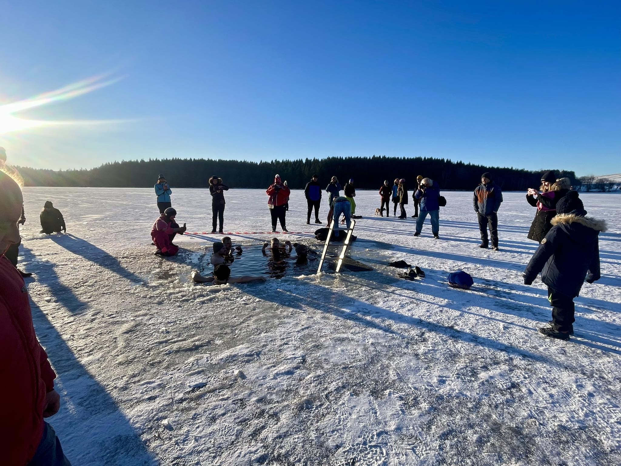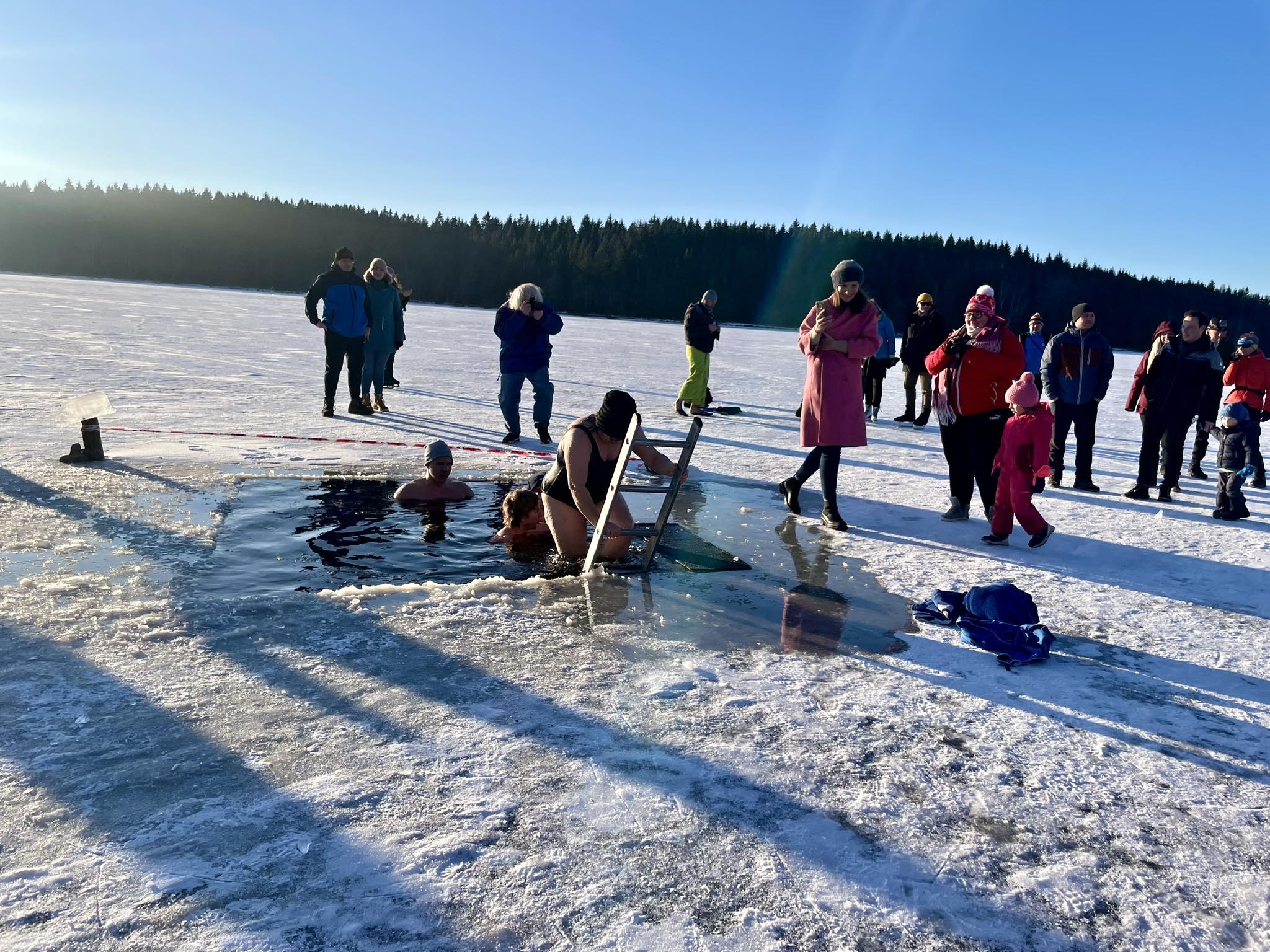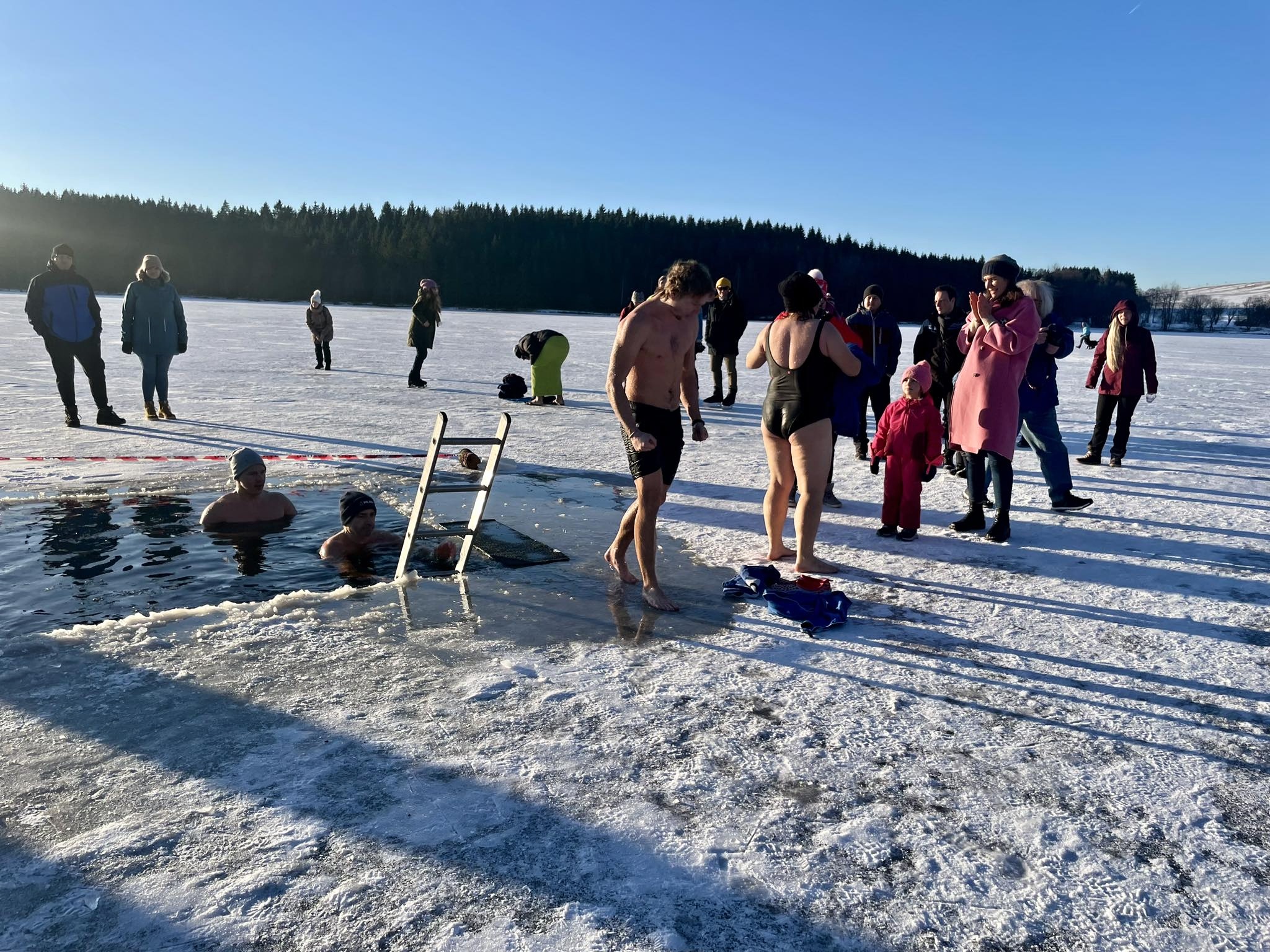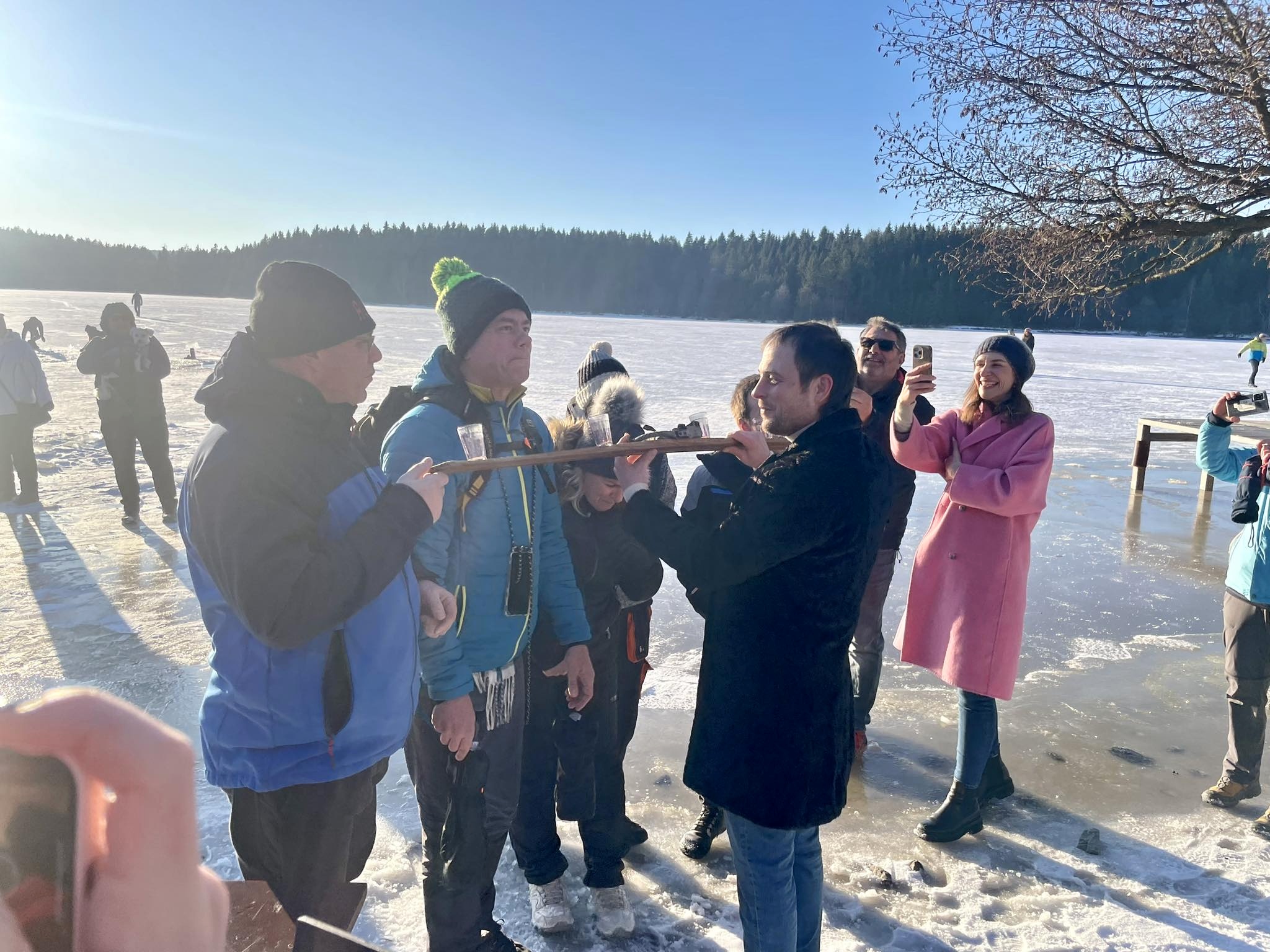 Přestože do ledové vody vlezlo jen pár nadšenců, novinkou, kterou byl nový borůvkový likér Mertilus, nepohrdl nikdo. Slavnostní degustaci stejně jako koupací akci pro návštěvníky připravil Hotel Medlov.