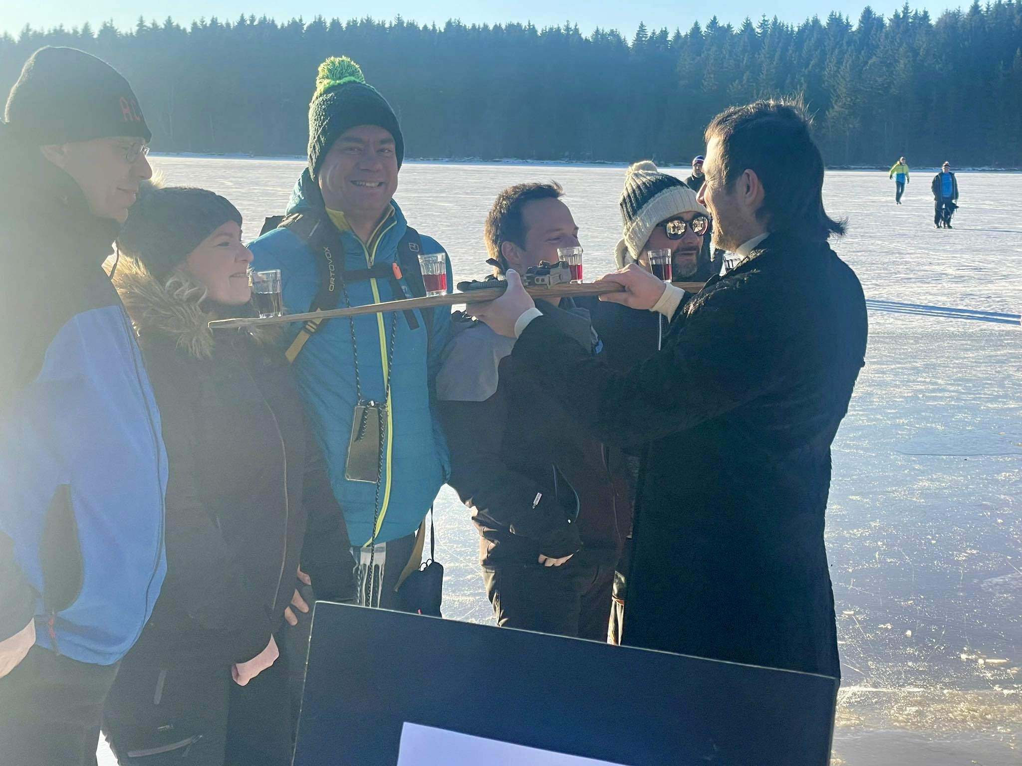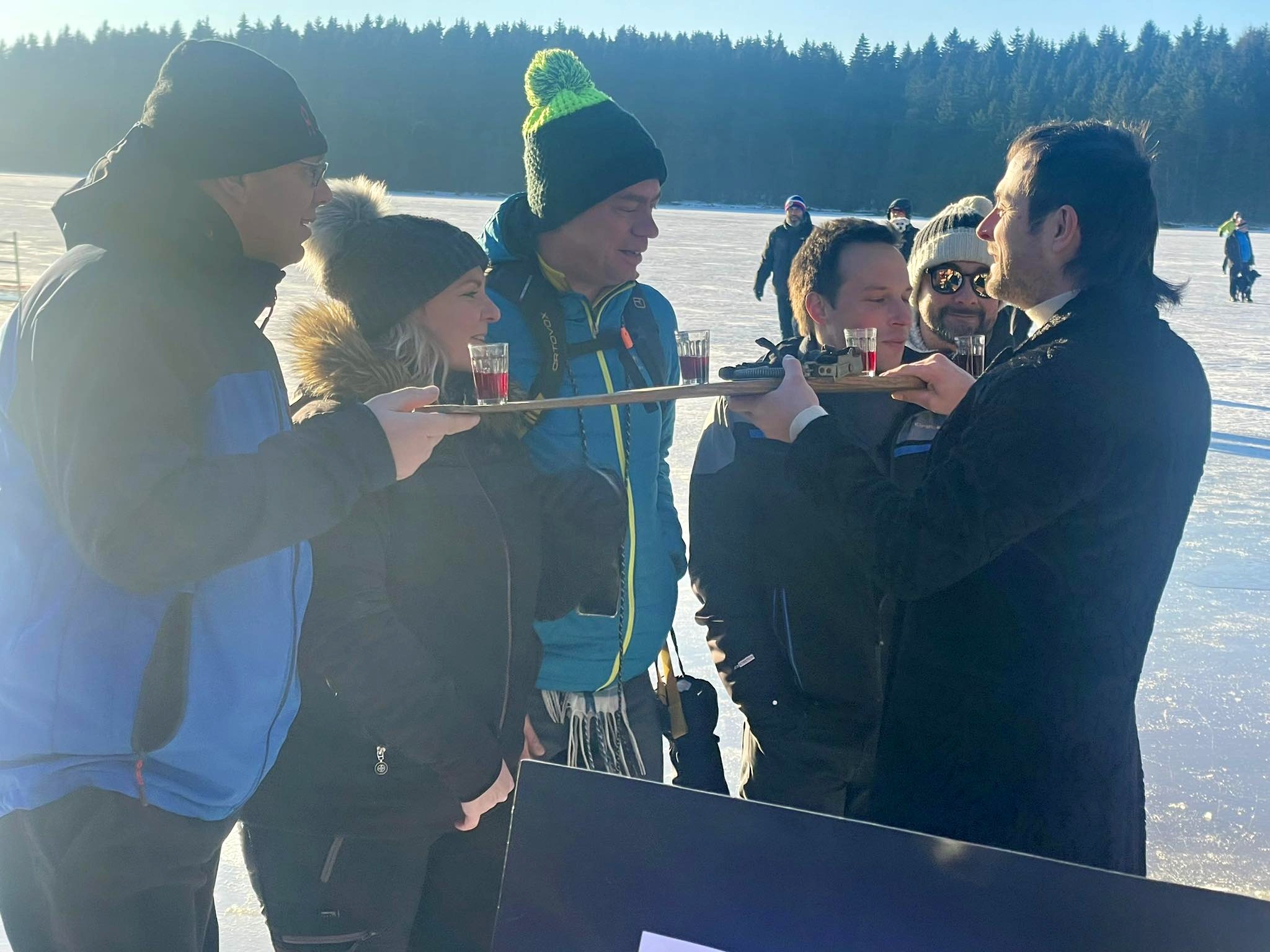Přípitek k poctě prvorepublikových lyžařů, kteří jsou s Medlovem již devět desítek let neodmyslitelně spojeni, zahřál a potěšil. Pětice vyvolených si navíc užila přípitek podávaný symbolicky na historické dřevěné lyži.