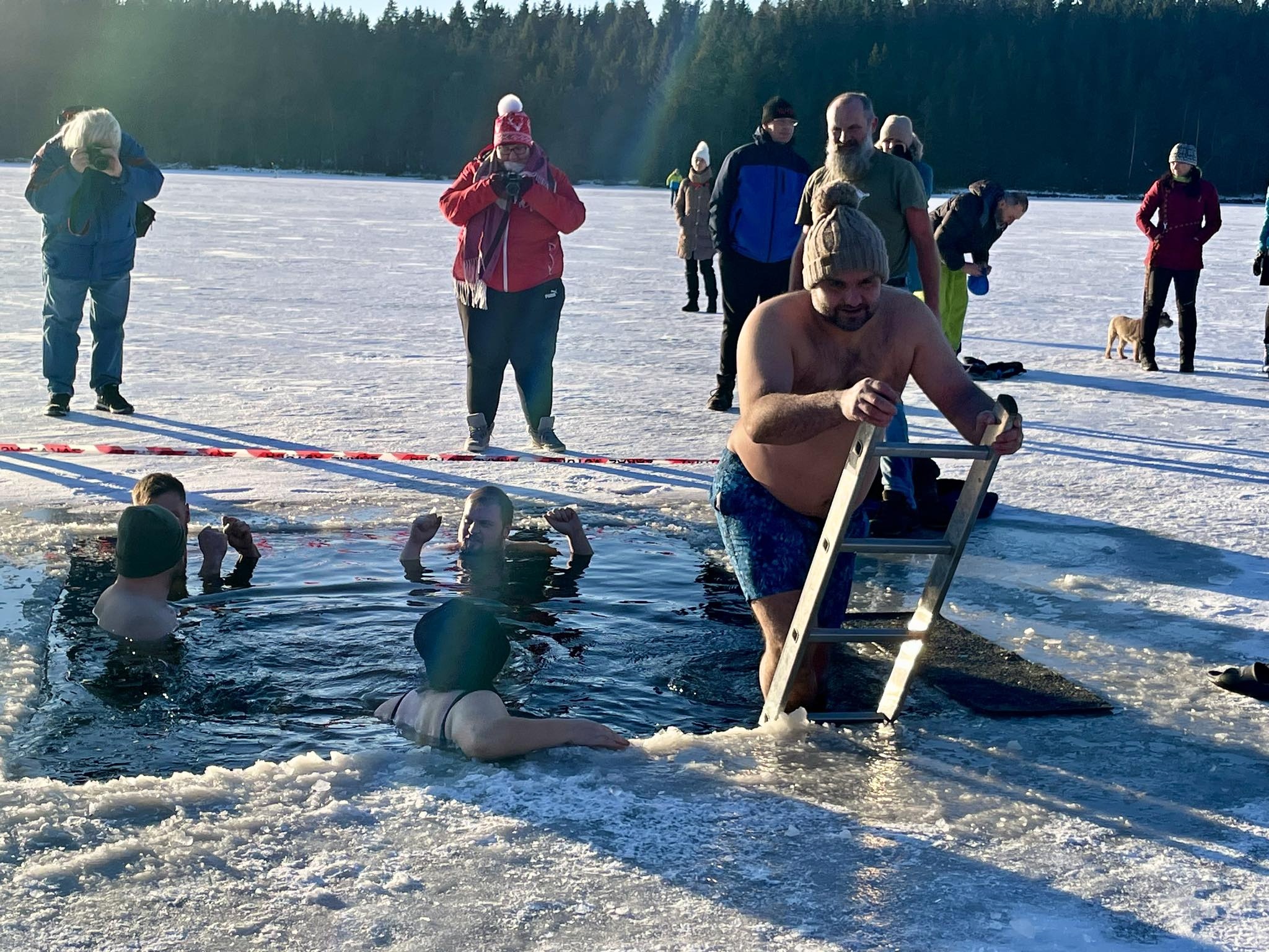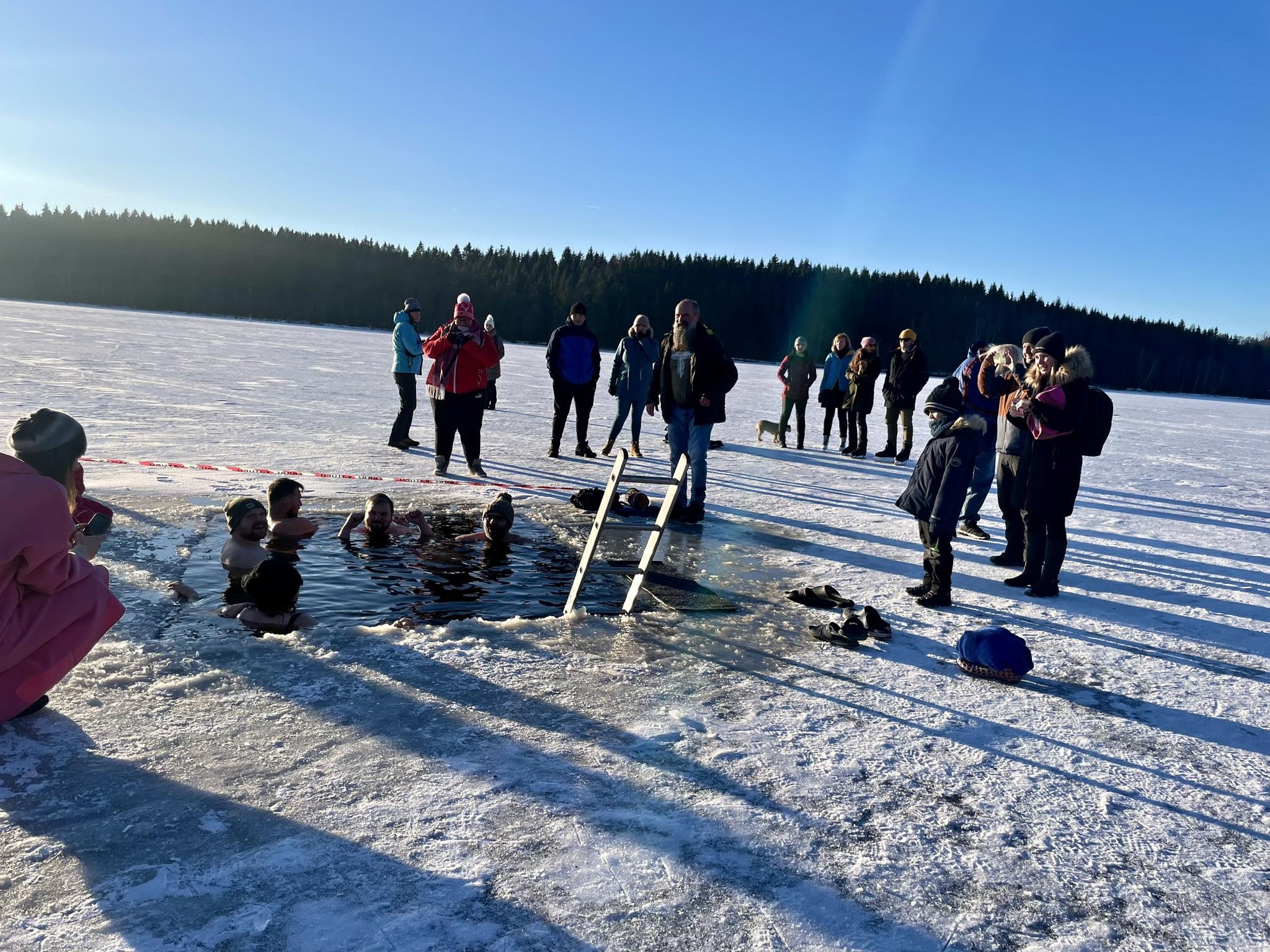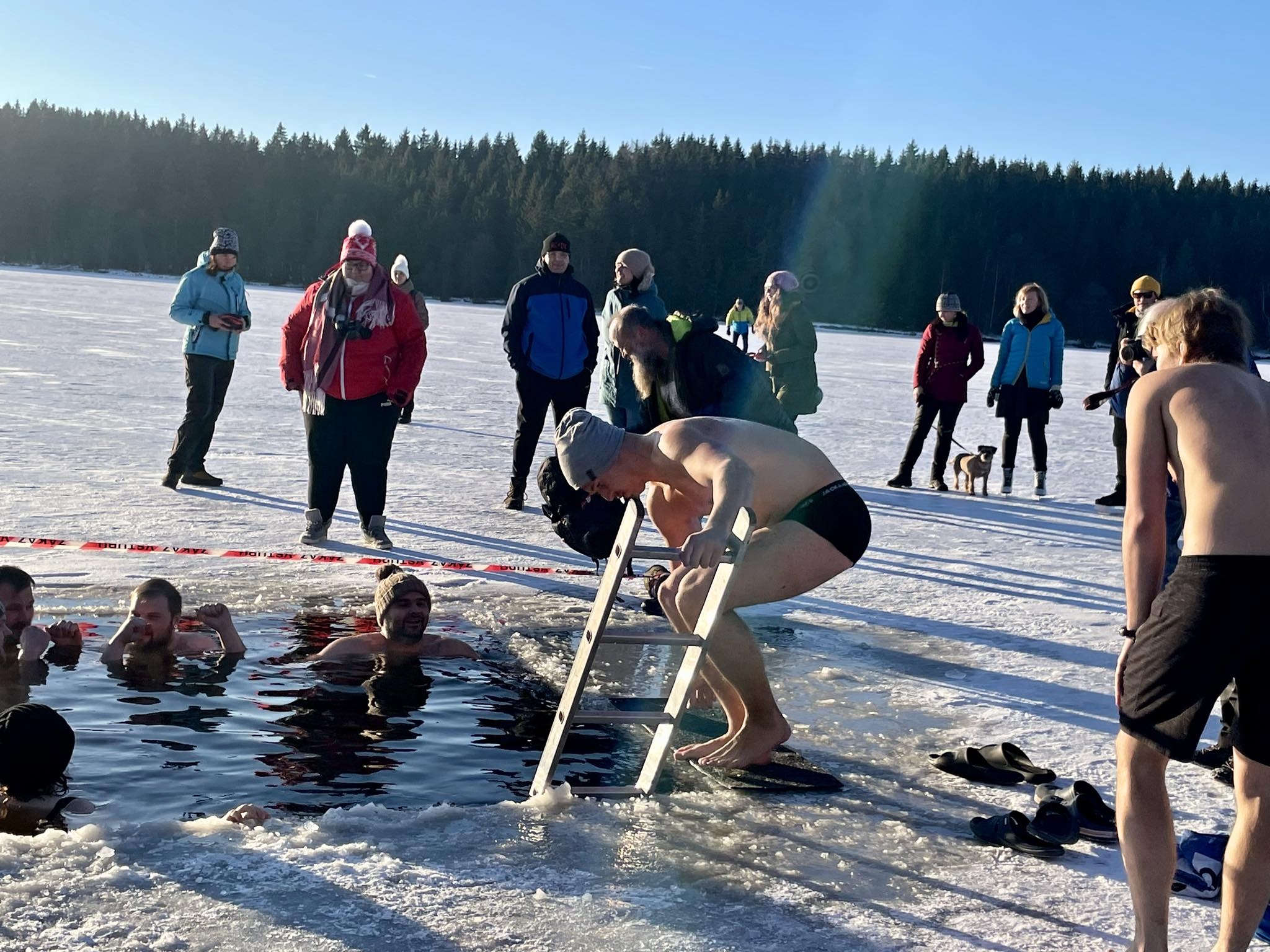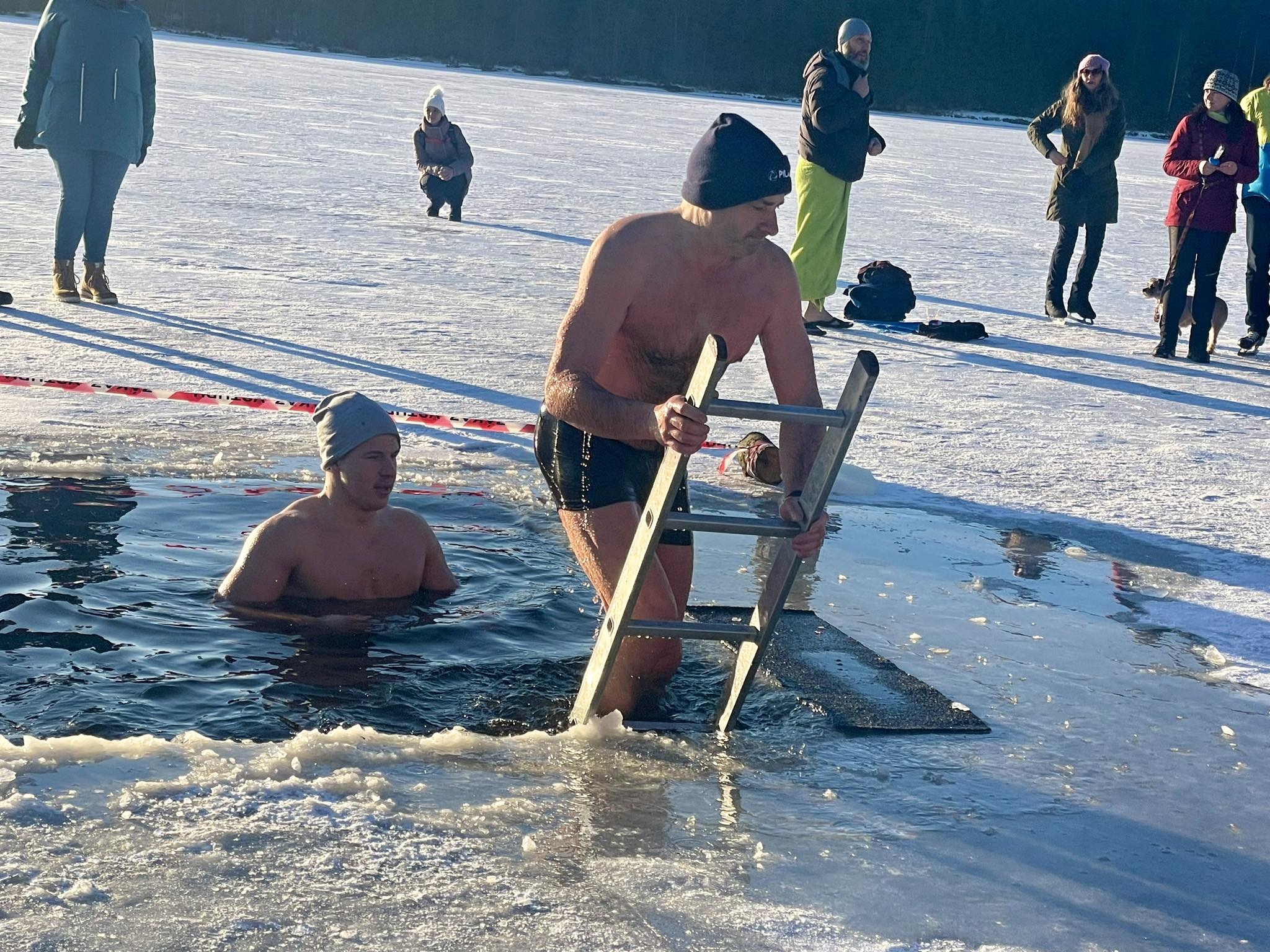 Ani mrazivé počasí neodradilo hrstku odvážlivců od koupání v rybníku Medlově. Do díry vysekané v ledu se nořili smělí muži i ženy, kterým teplota pod bodem mrazu strach nenahnala. Naopak.