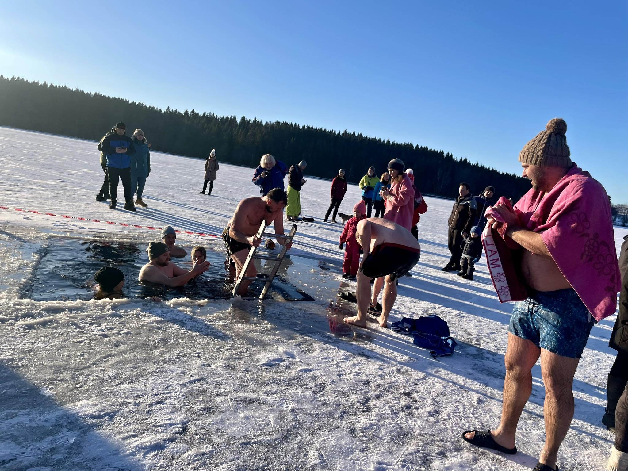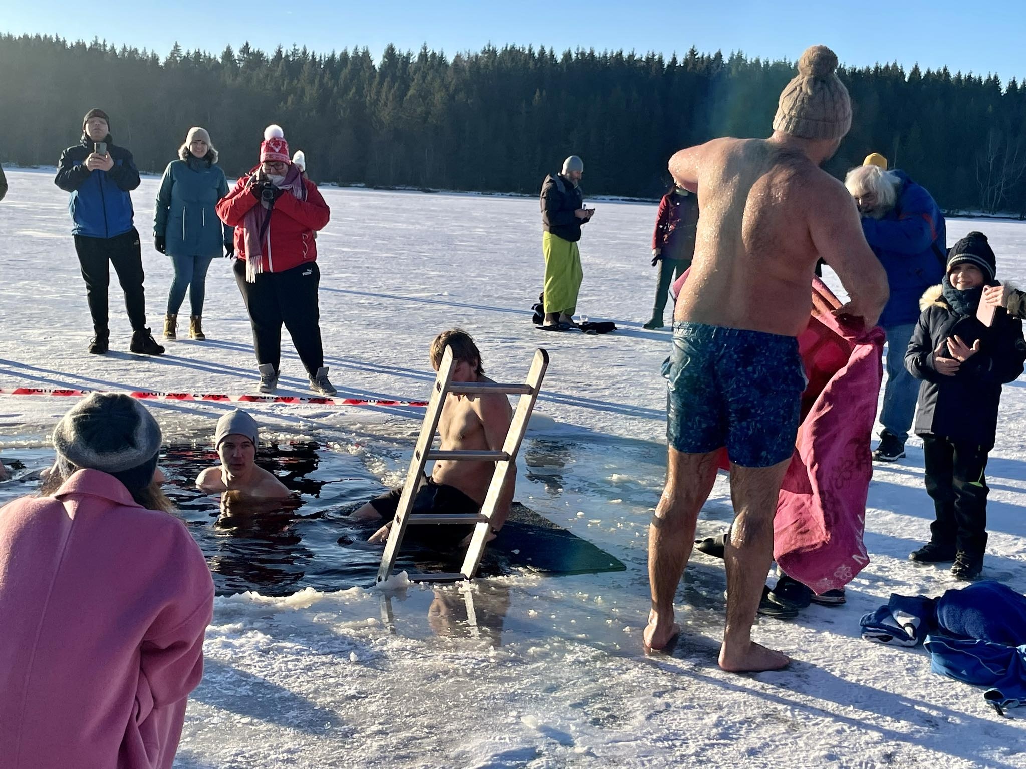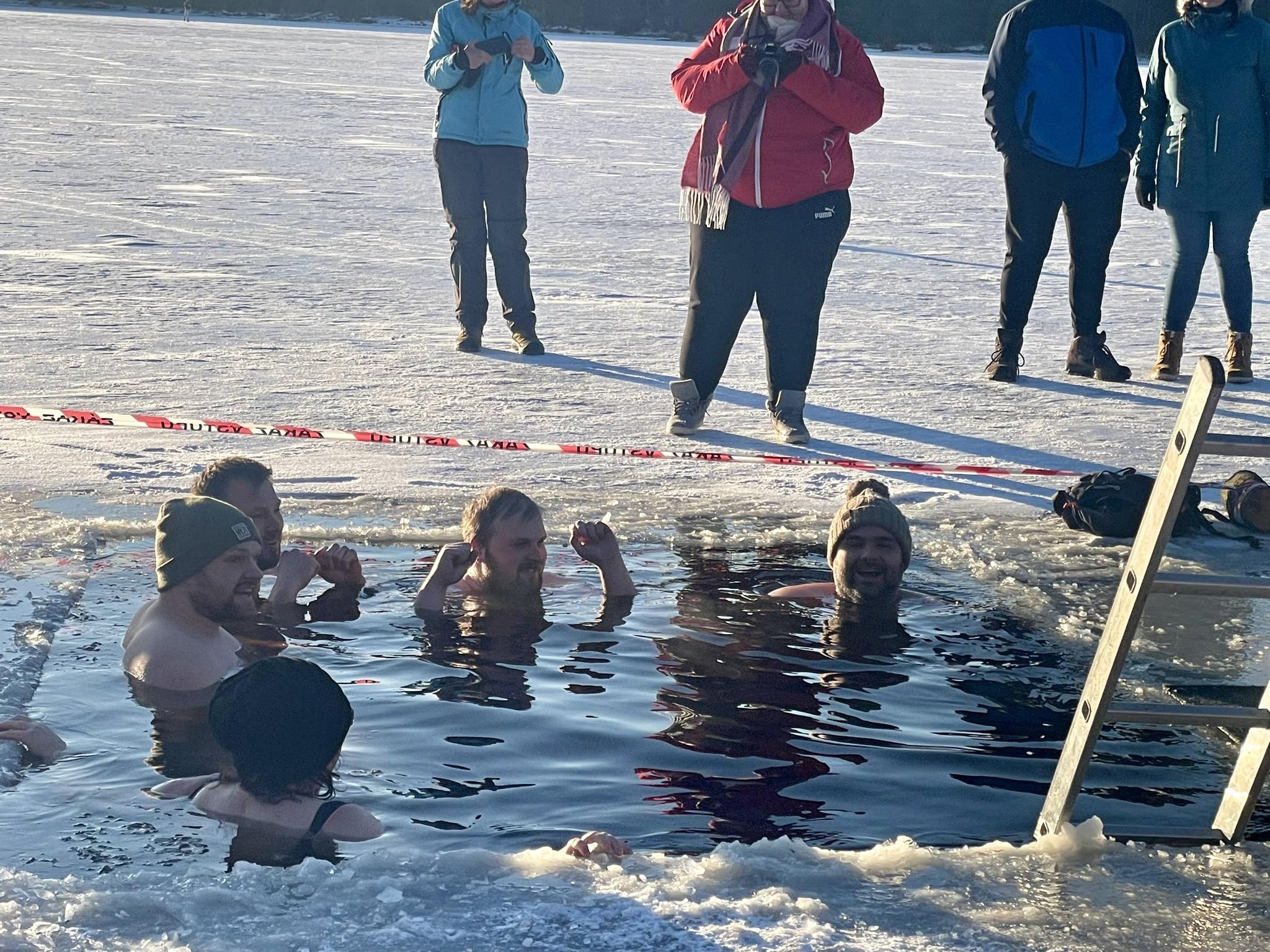 Ani mrazivé počasí neodradilo hrstku odvážlivců od koupání v rybníku Medlově. Do díry vysekané v ledu se nořili smělí muži i ženy, kterým teplota pod bodem mrazu strach nenahnala. Naopak.