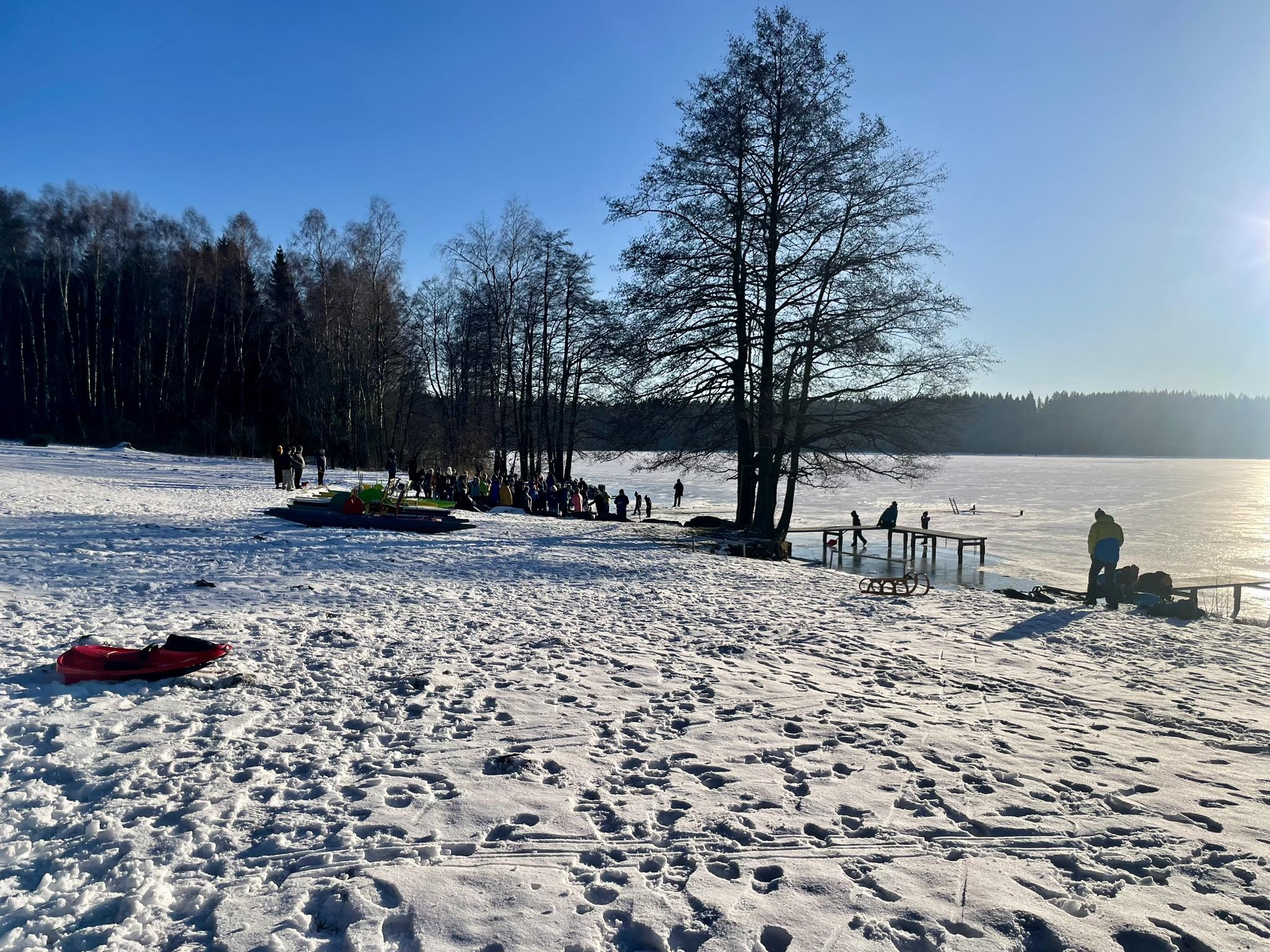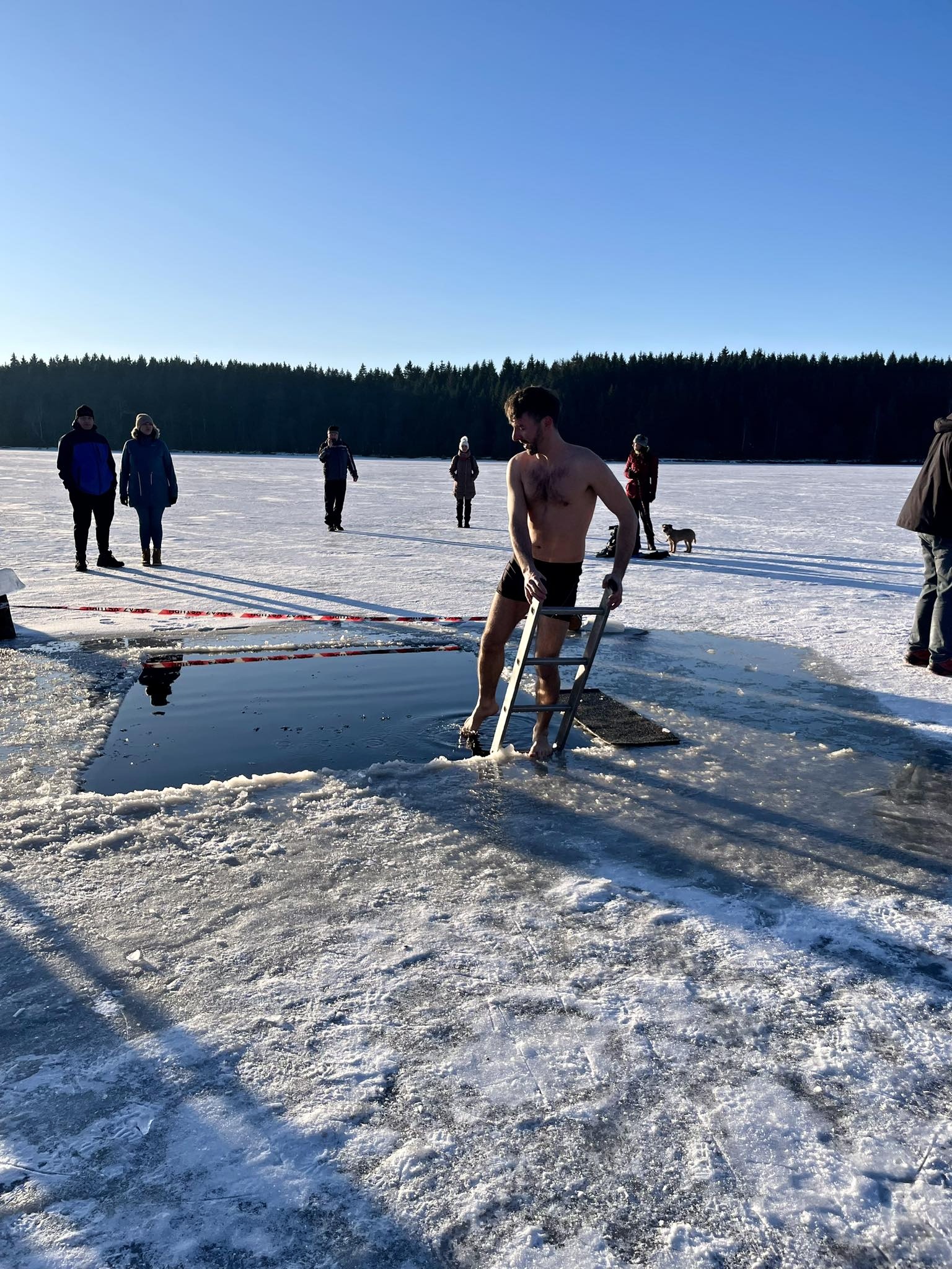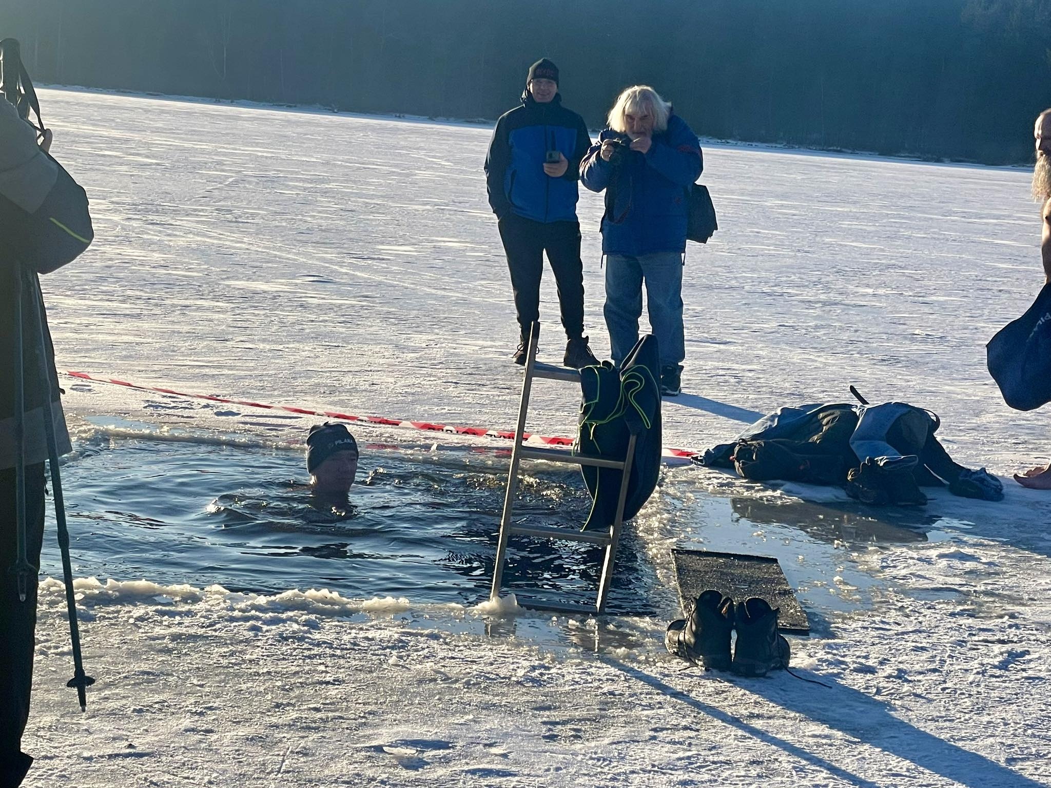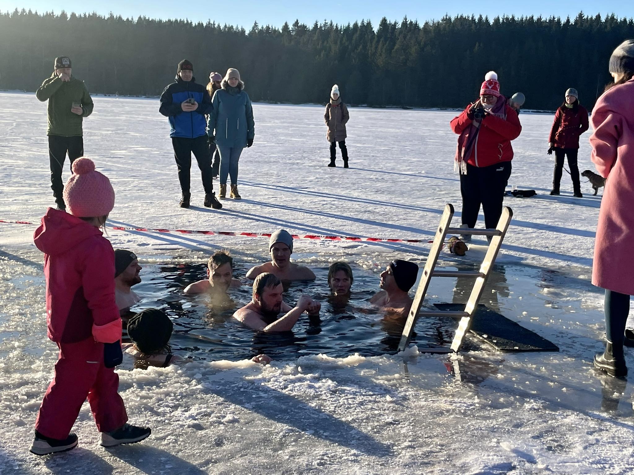 Ani mrazivé počasí neodradilo hrstku odvážlivců od koupání v rybníku Medlově. Do díry vysekané v ledu se nořili smělí muži i ženy, kterým teplota pod bodem mrazu strach nenahnala. Naopak.