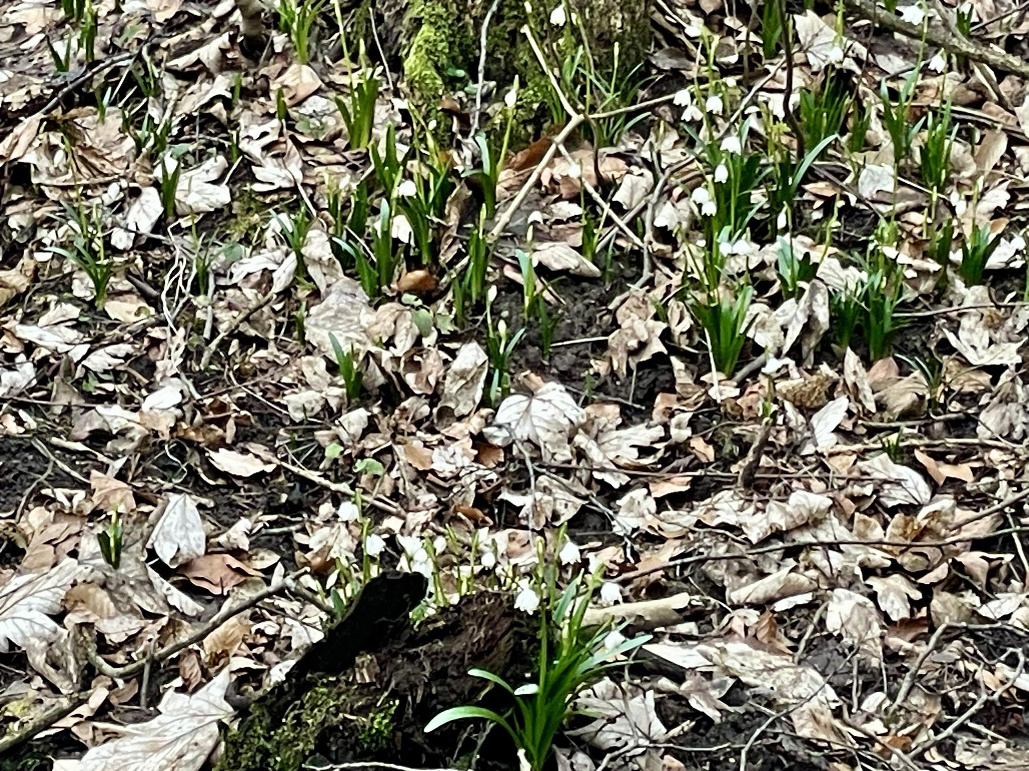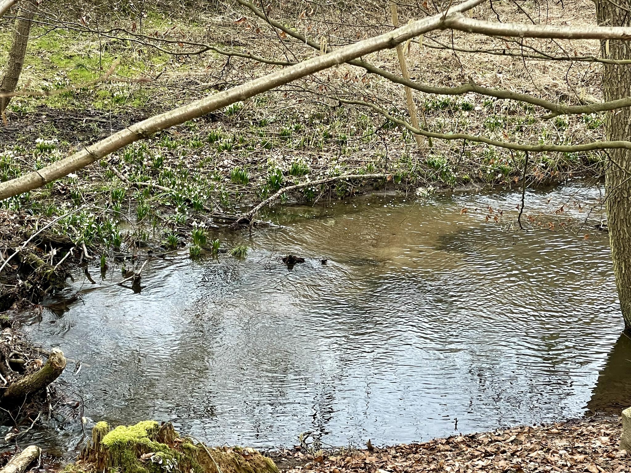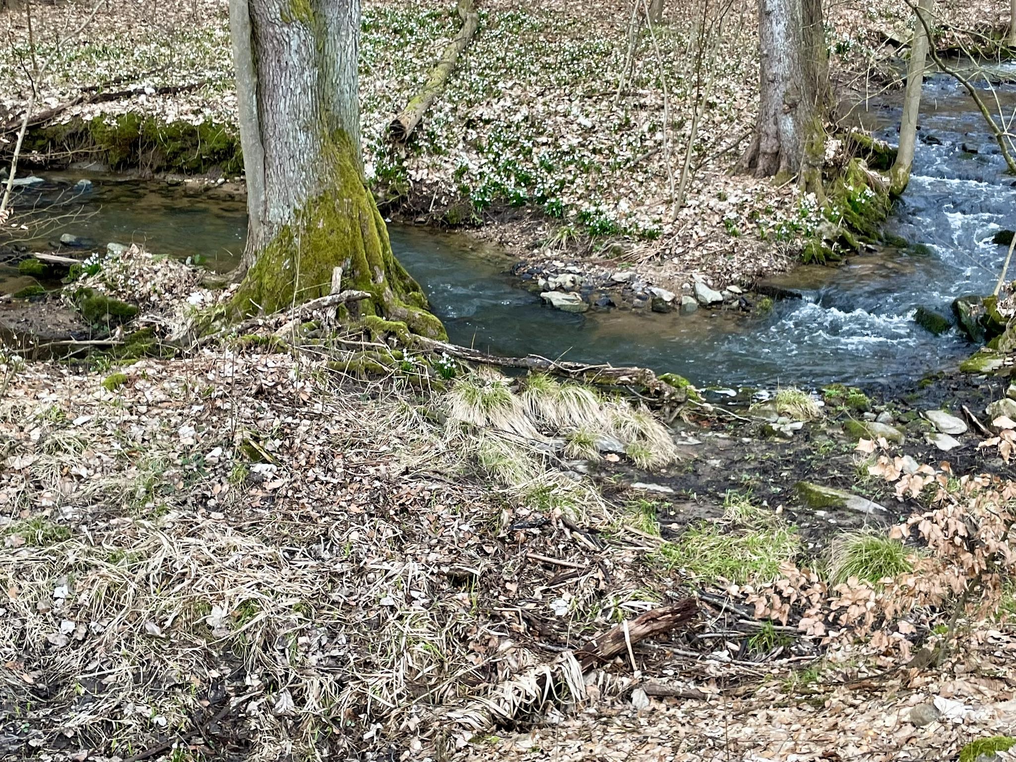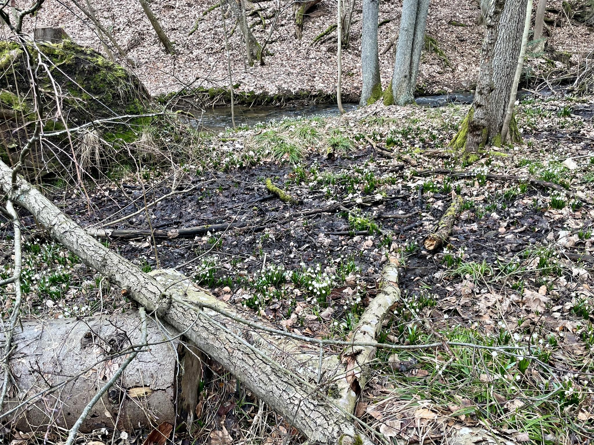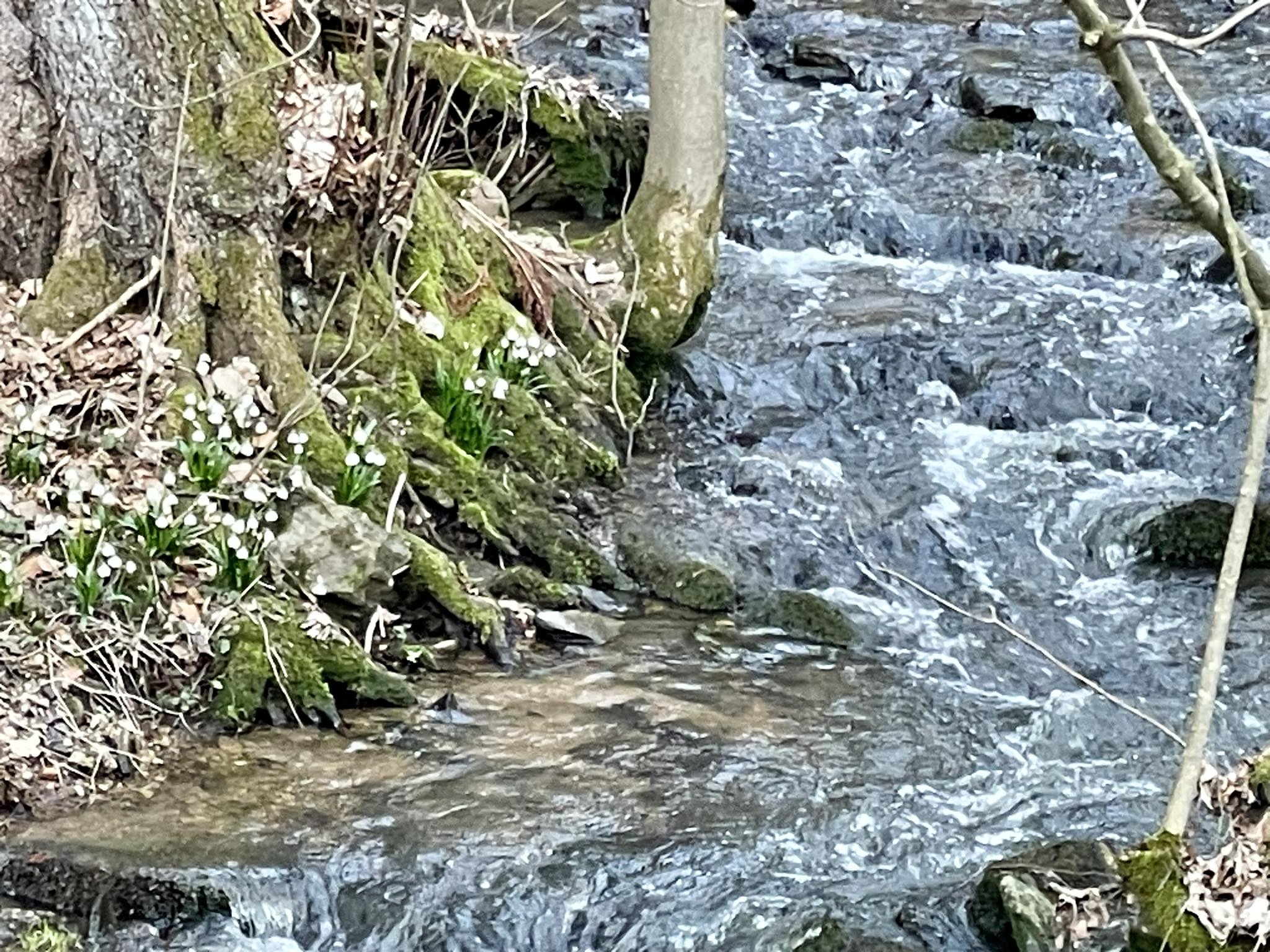 Přestože kalendář hlásí stále ještě zimu, v údolí Chlébského potoka už jaro vystrkuje drápky. Bledule jarní se roztahují nejen podél břehů tekoucí vody, ale také v širokém okolí.