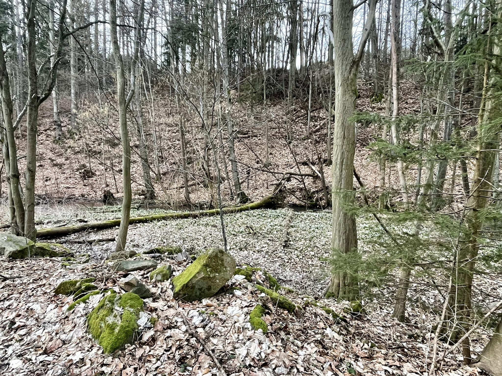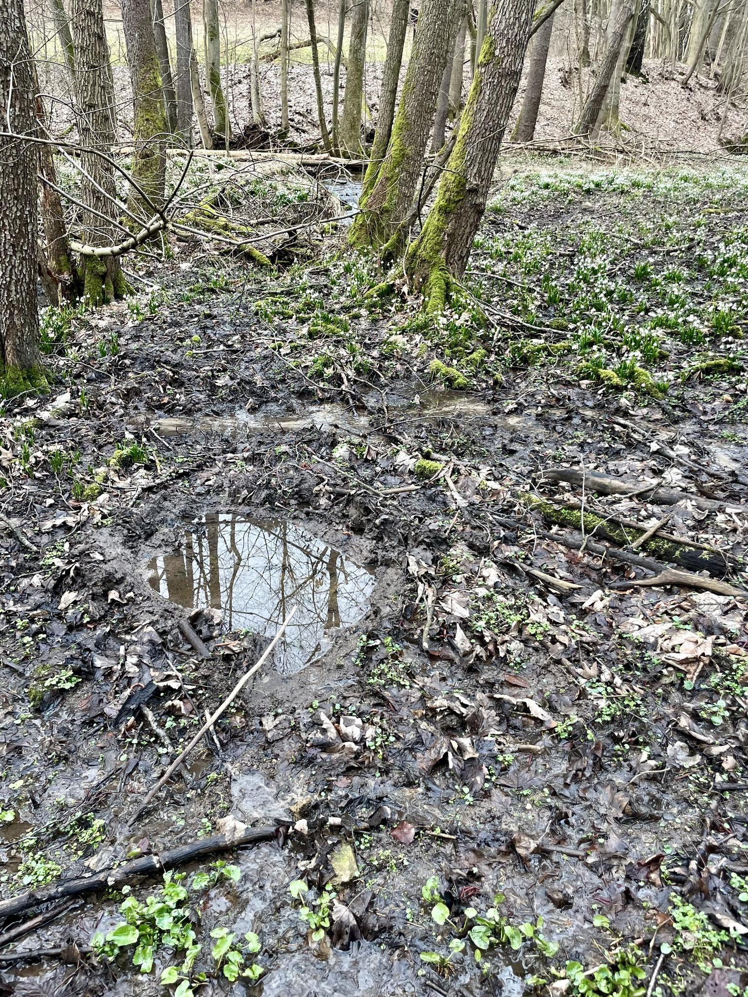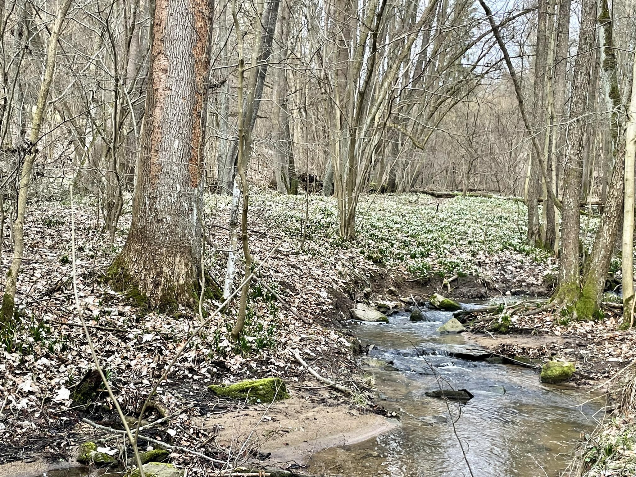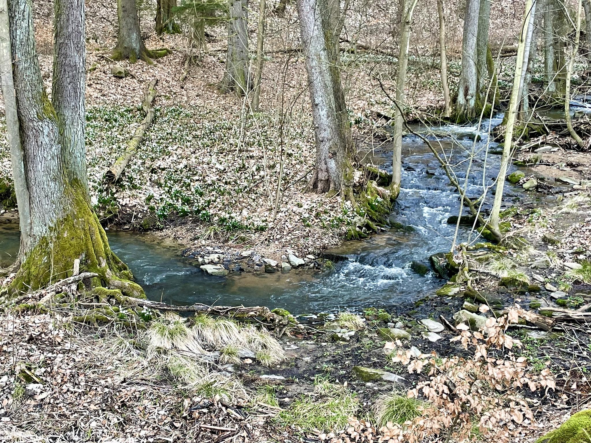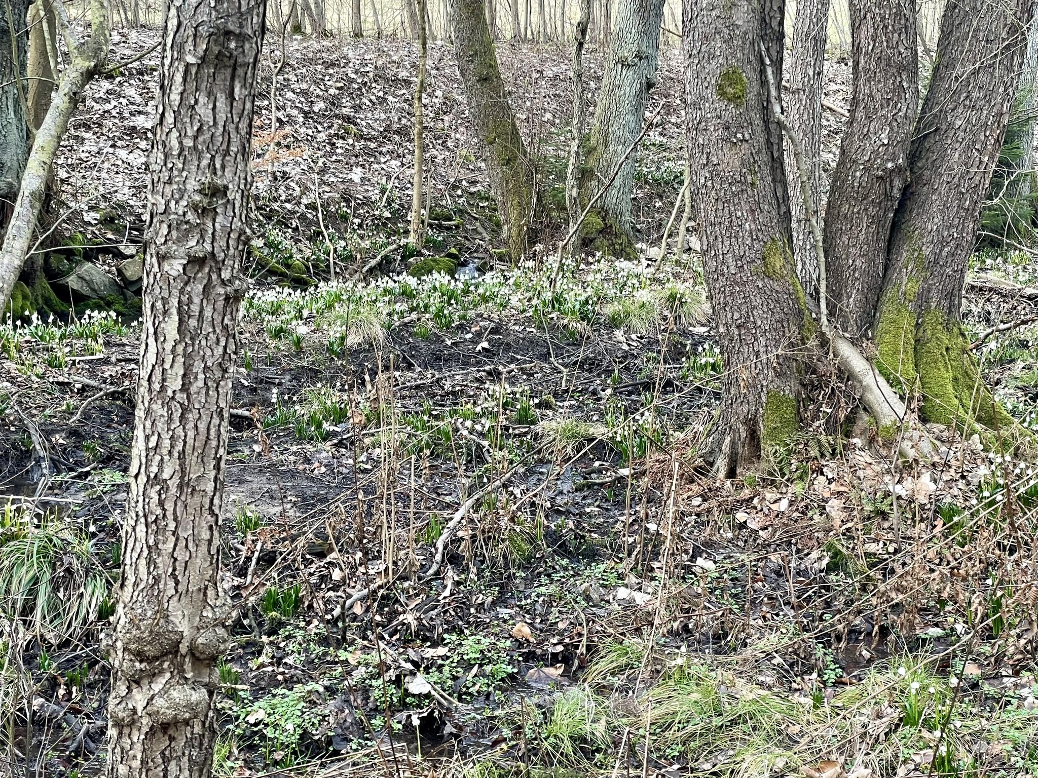 Přestože kalendář hlásí stále ještě zimu, v údolí Chlébského potoka už jaro vystrkuje drápky. Bledule jarní se roztahují nejen podél břehů tekoucí vody, ale také v širokém okolí.