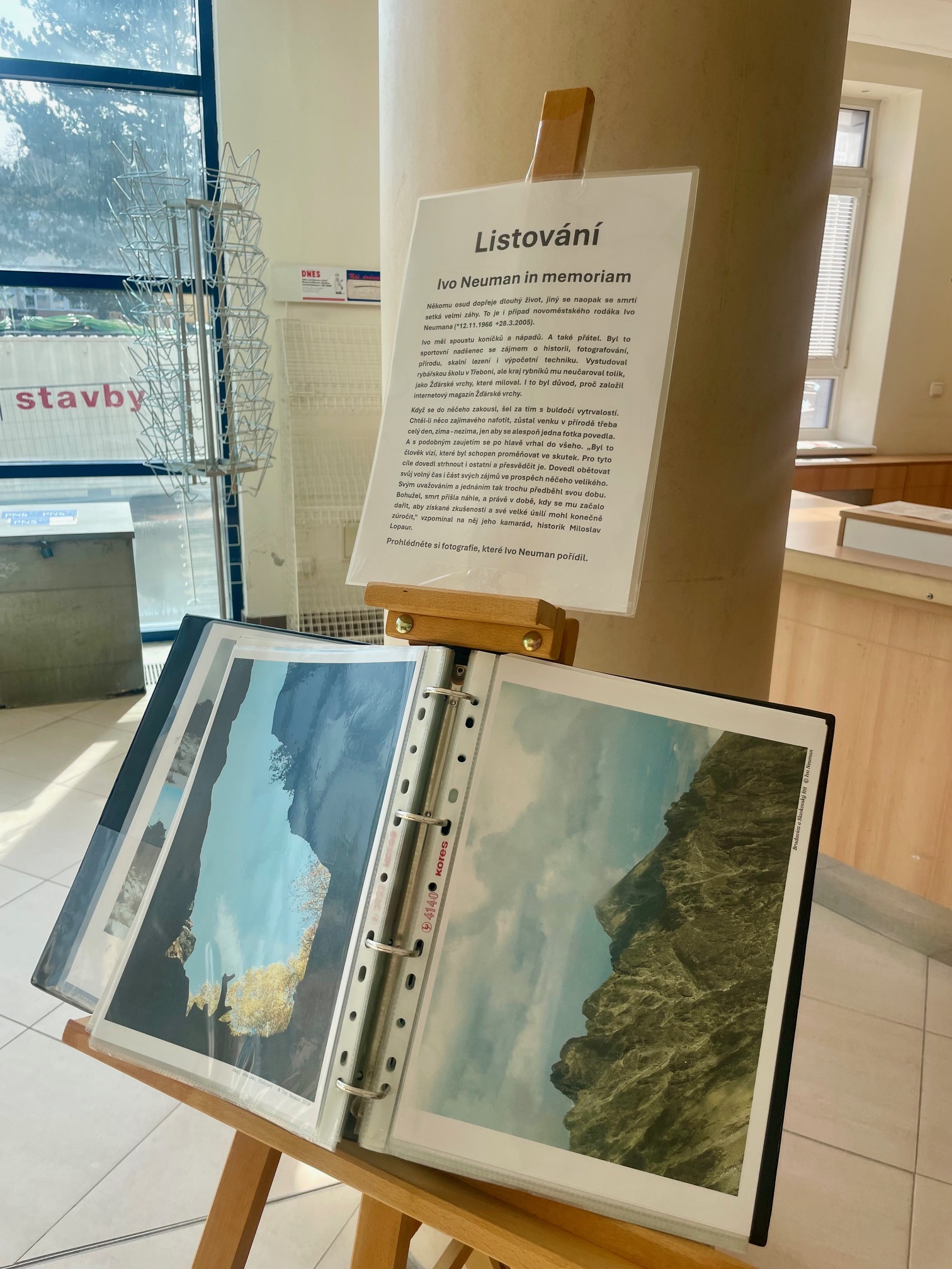 Kromě obrazů jsou ve foyer pavilonu chirurgických oborů k vidění také fotografie novoměstského rodáka a zakladatele internetového magazínu Žďárské vrchy Iva Neumana in memoriam. Ačkoliv mu osud nedopřál dlouhého života, stihl toho opravdu hodně. Byl to sportovní nadšenec se zájmem o historii, fotografování, přírodu, skalní lezení i výpočetní techniku. Vystudoval rybářskou školu v Třeboni, ale kraj rybníků mu neučaroval tolik, jako Žďárské vrchy, které velmi miloval. I to byl důvod, proč založil již zmíněný internetový magazín Žďárské vrchy.