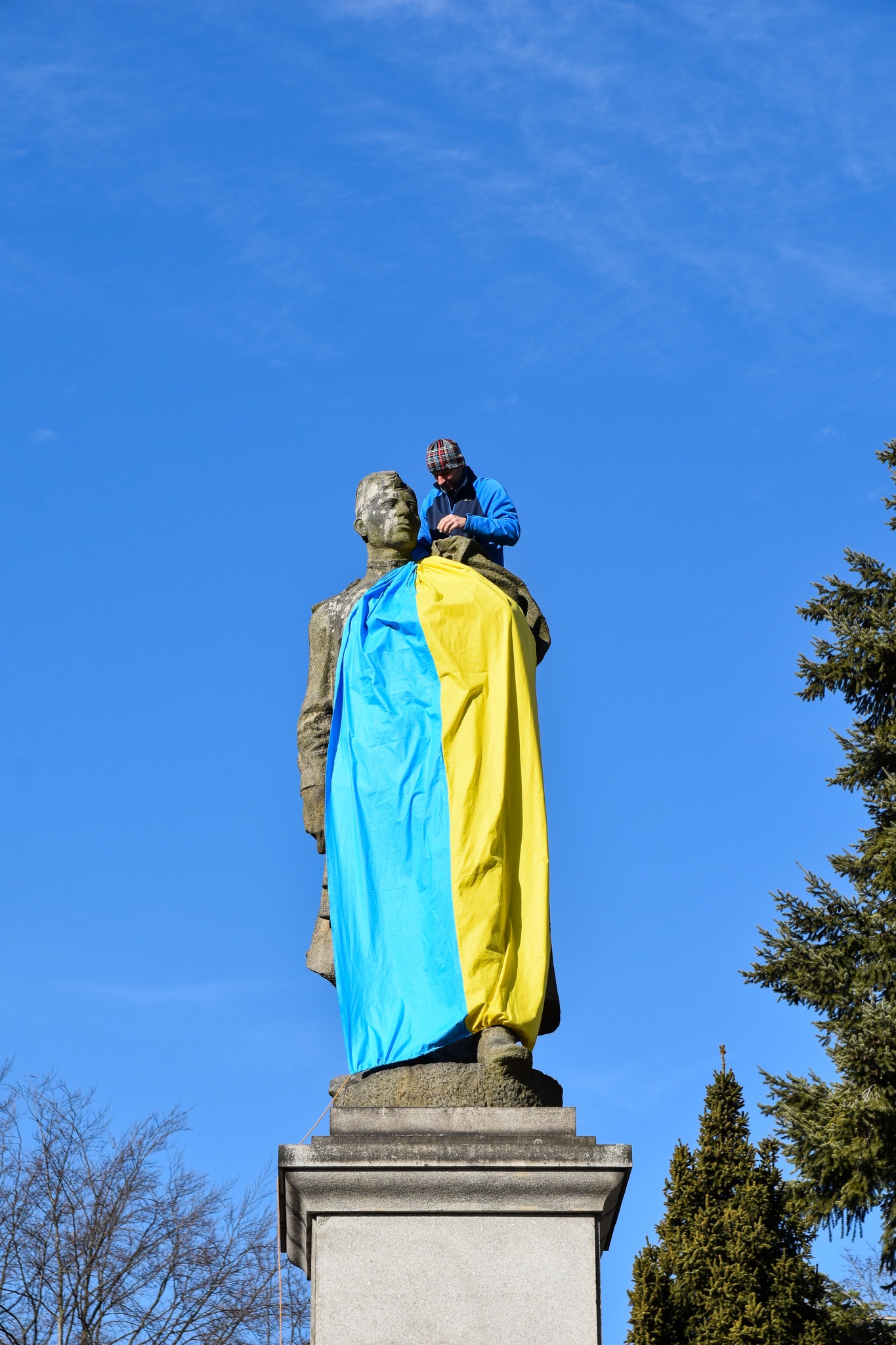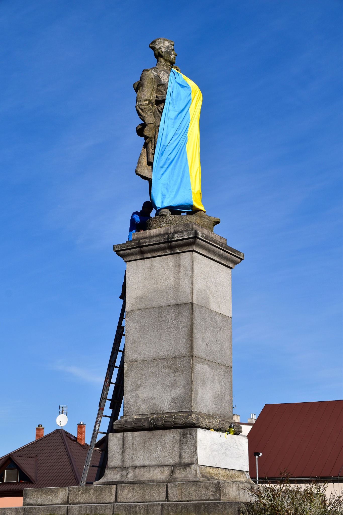 Ukrajinská vlajka na soše vojína není vůbec od věci. První rudoarmějec, který 10. května 1945 vstoupil do Žďáru, byl totiž rodem Ukrajinec. Jmenoval se Ivan Grigorijevič Lukašenko a pocházel ze Sumy.