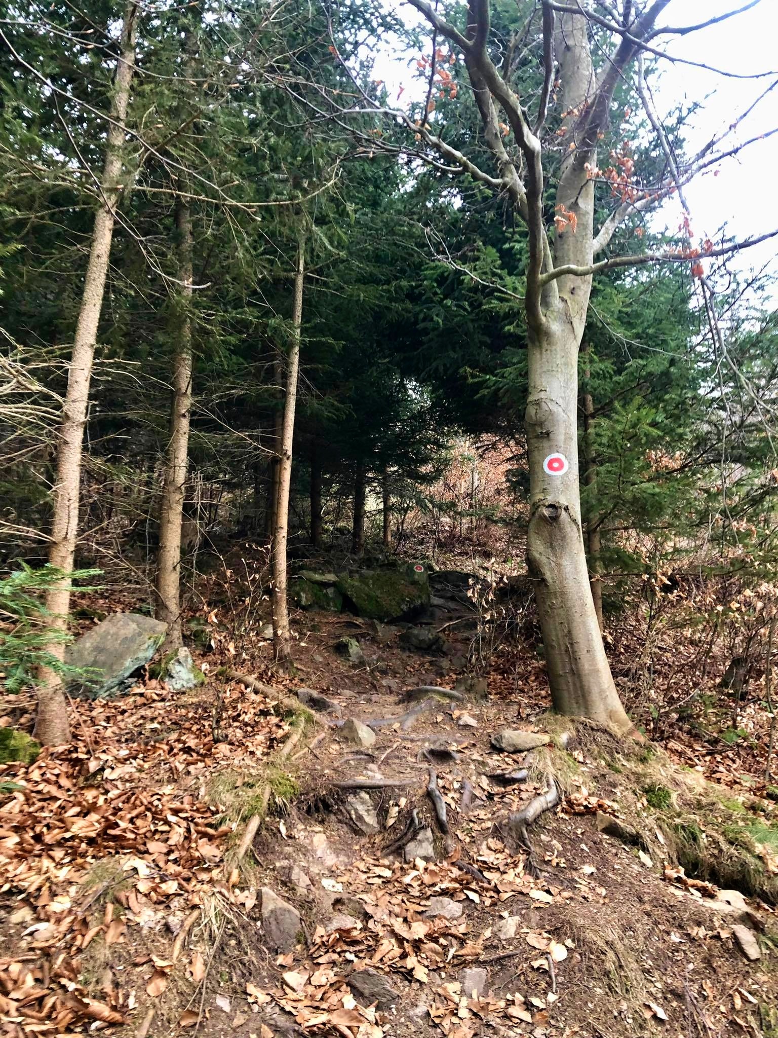Chcete-li si užít příjemnou procházku s jedinečnými výhledy, pak se vydejte do Víru na Bystřicku. Vaše cesta může začít třeba pod Rossiho skálou, která je jasně označená českou vlajkou třepotající se na vrcholu skaliska. Povede vás poněkud jiná značka, než na jakou jsou běžní turisté zvyklí – bílá tečka ohraničená dvěma kruhy, červeným a bílým.