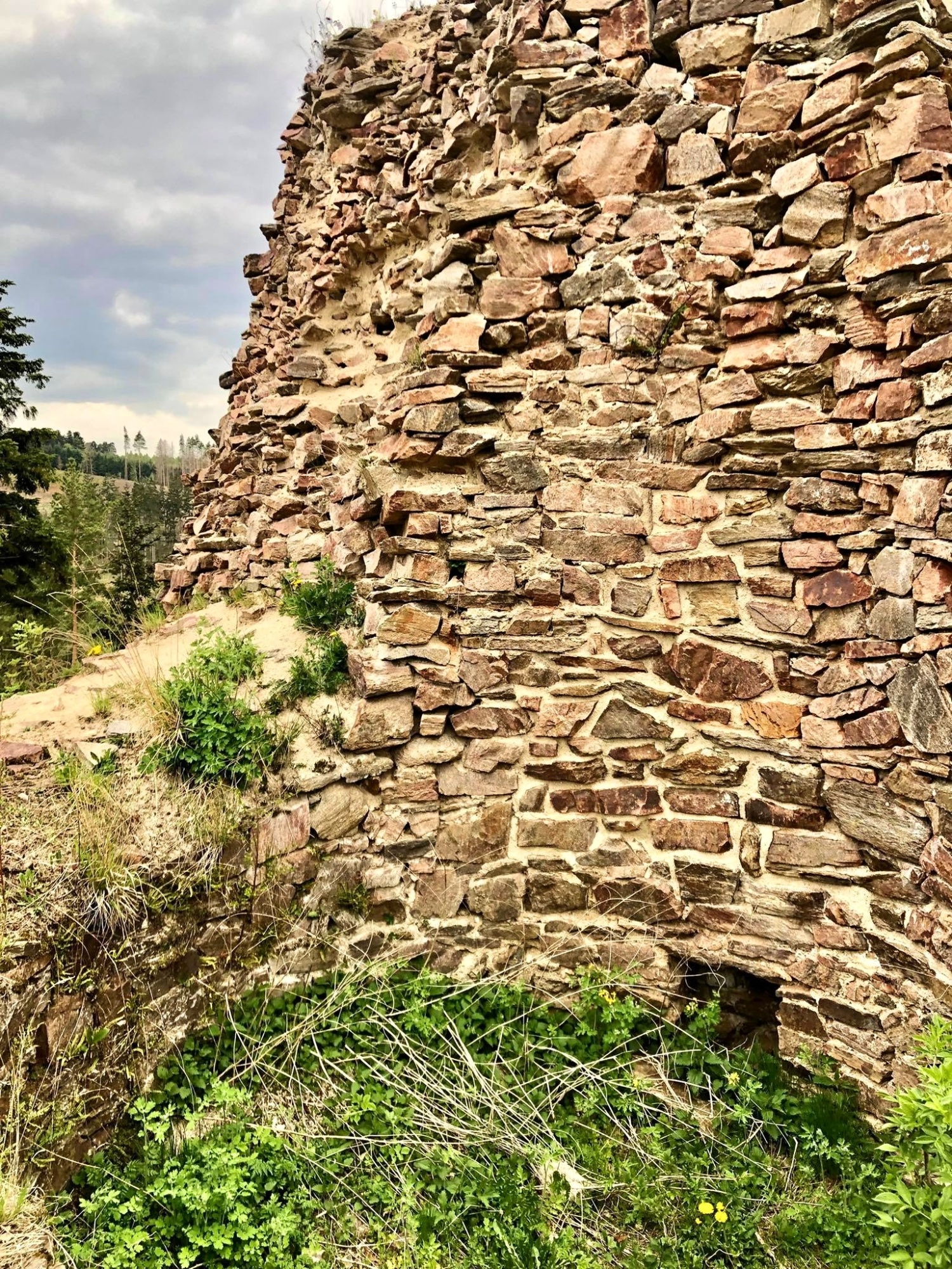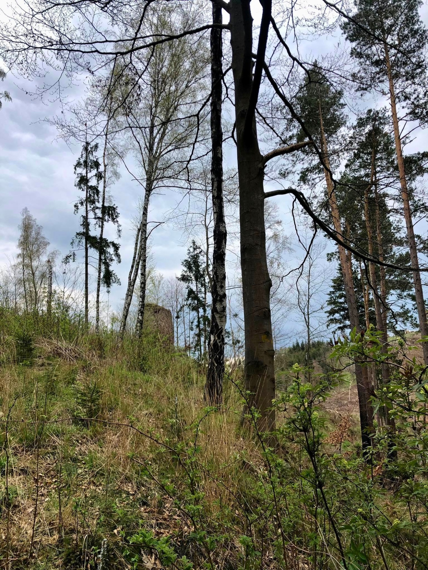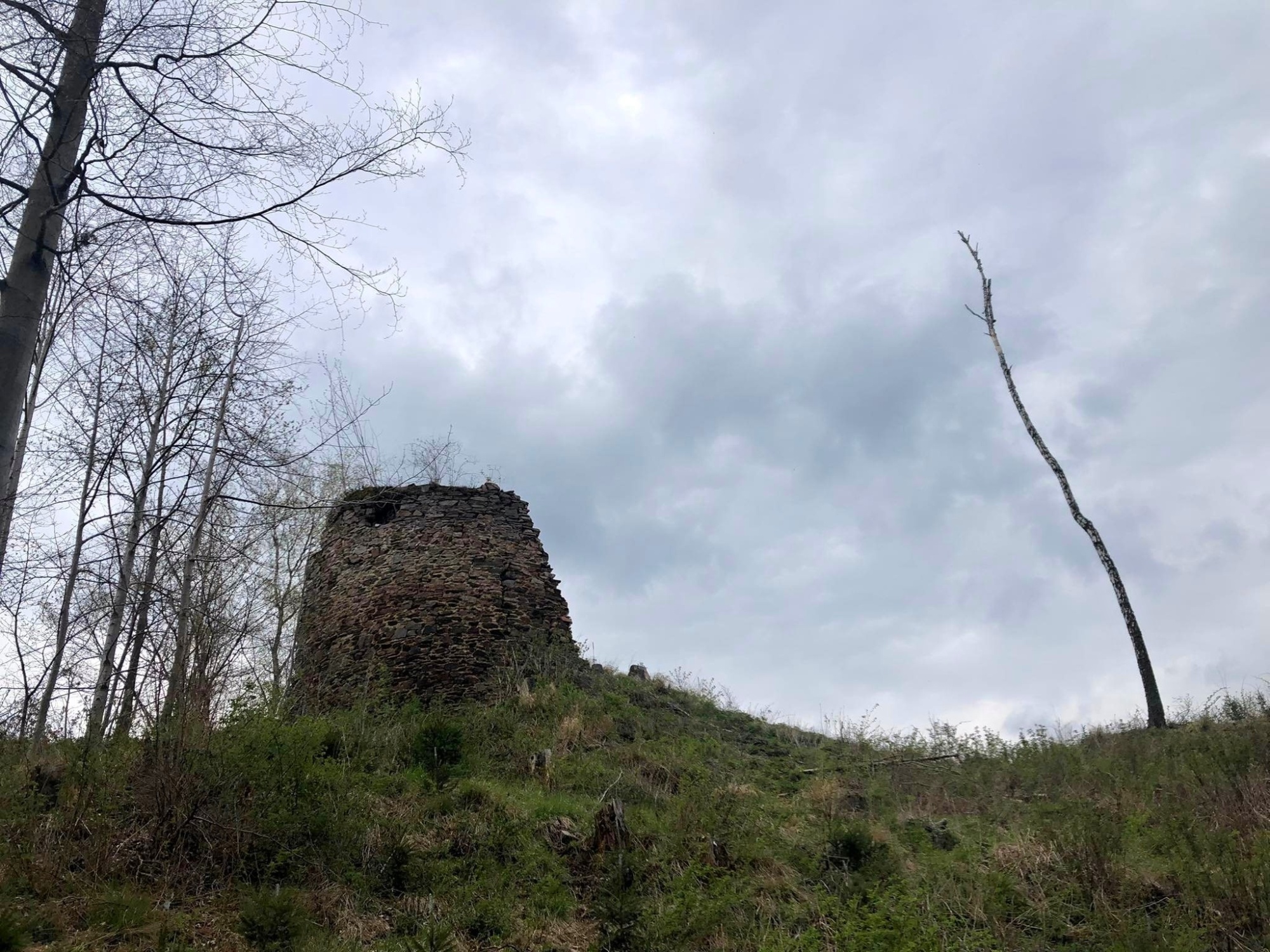 Skalnatý břeh nad říčkou Bystřicí se zbytkem lesního porostu zpola zakrývá zříceninu hradu Aueršperku. Z někdejšího honosného sídla toho mnoho nezbylo.