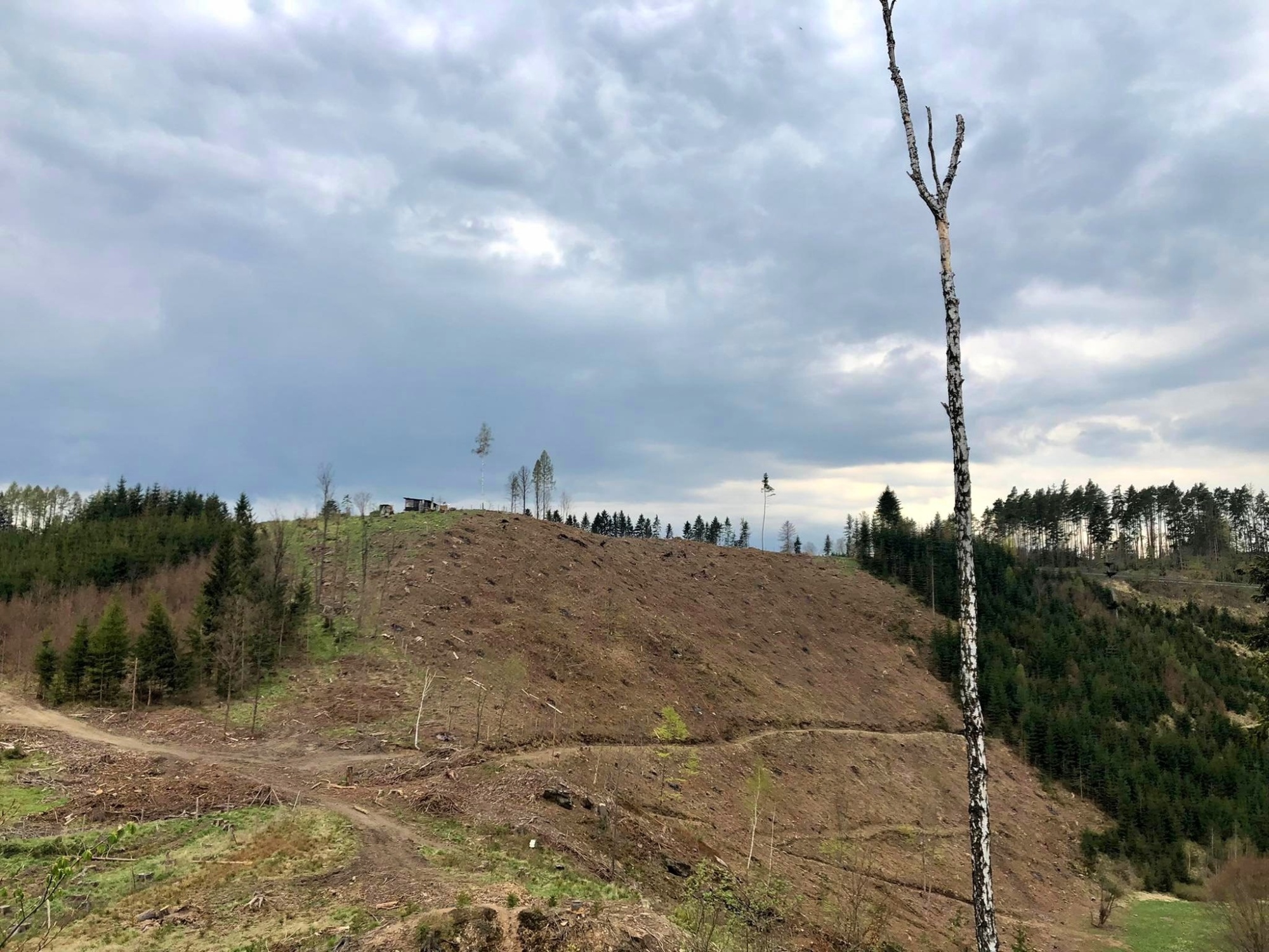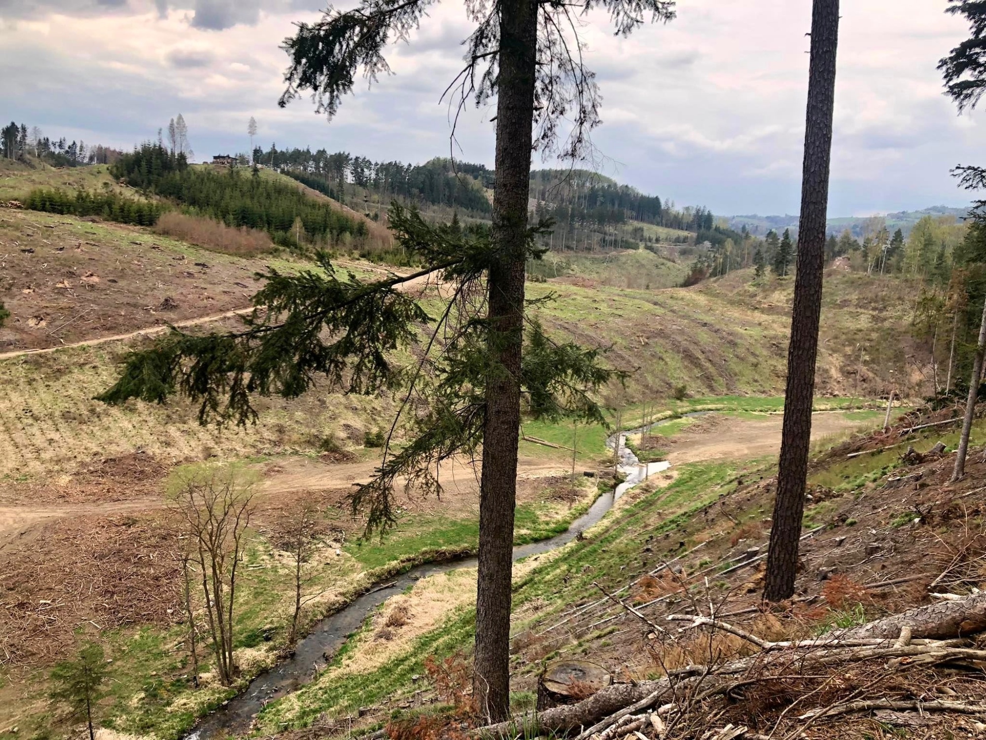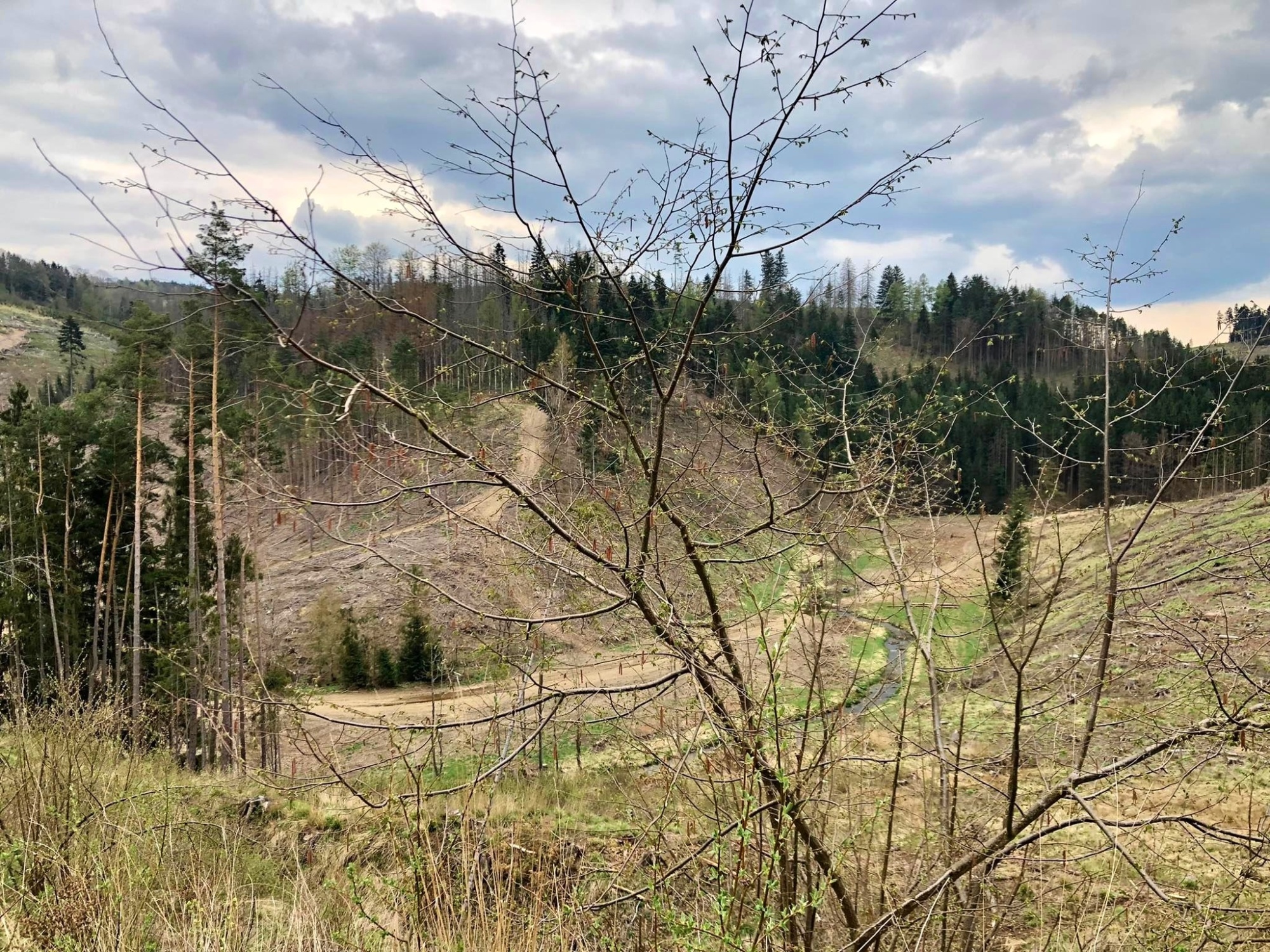 Skalnatý břeh nad říčkou Bystřicí se zbytkem lesního porostu zpola zakrývá zříceninu hradu Aueršperku. Z někdejšího honosného sídla toho mnoho nezbylo.