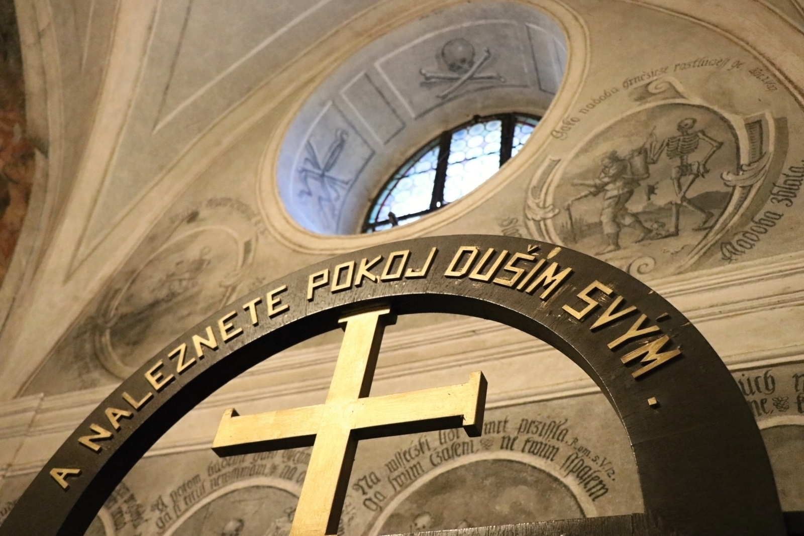 Lebka s hnáty, hodiny odtikávající poslední minuty života i ďábel sám – to jsou některé z mnoha nástěnných výjevů v Černé kapli, která je součástí kostela zasvěceného svaté Kunhutě v Novém Městě na Moravě.