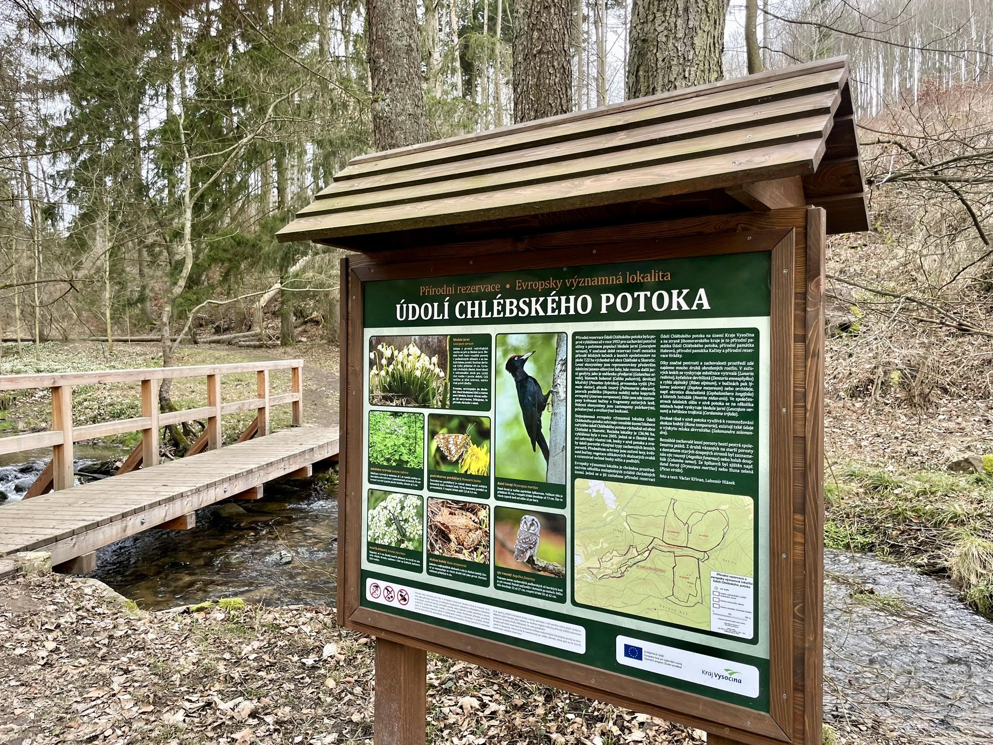 Přírodní rezervace údolí Chlébského potoka byla poprvé vyhlášena už v roce 1953. Evropsky významná lokalita nacházející se východně od obce Chlébské má rozlohu 136, 96 hektarů. Hojně zastoupenou populaci bledule jarní doplňují i další jarní rostliny, jako například sněženka předjarní, blatouch bahenní, plicník tmavý nebo jaterník podléška.