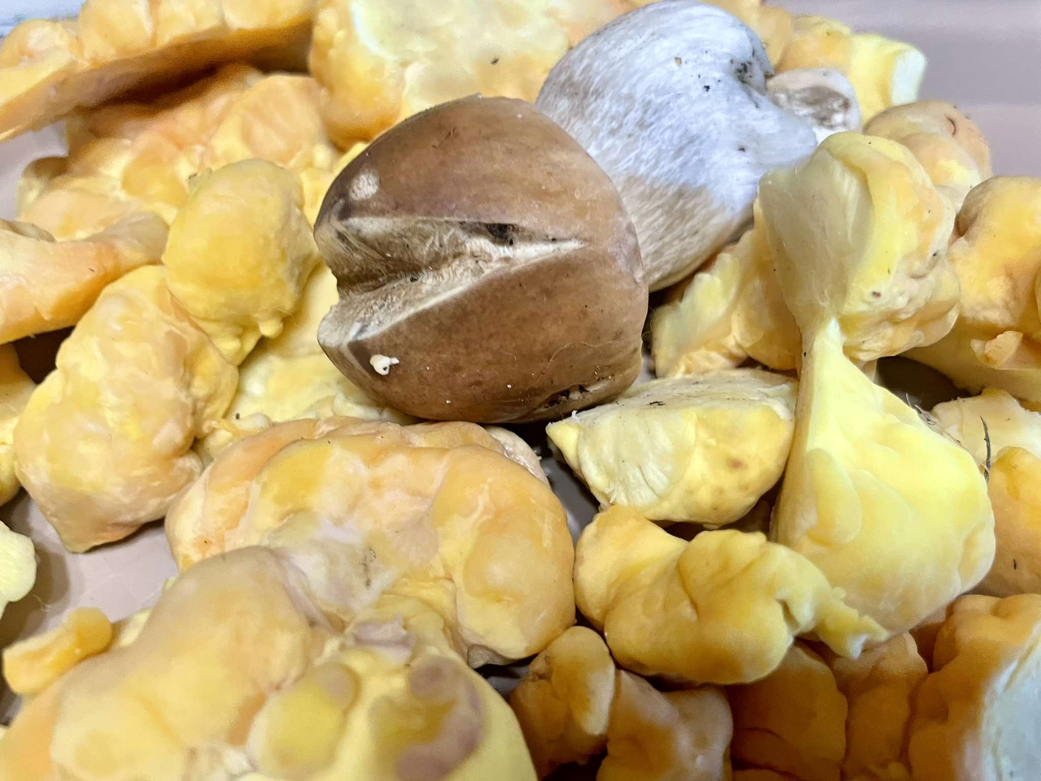 Sírovec žlutooranžový, neboli také choroš sírový, je nutné ořezat v době, kdy jsou mladé plodnice čerstvé a měkké a tudíž i poživatelné a vhodné pro kuchyňskou úpravu. „Starší kusy už sbírat nedoporučuji, řízky z nich chutnají trochu jako řízky z pilin," usmívá se Julie Kubská, která si „pěstuje" svůj vlastní sírovec rok co rok.