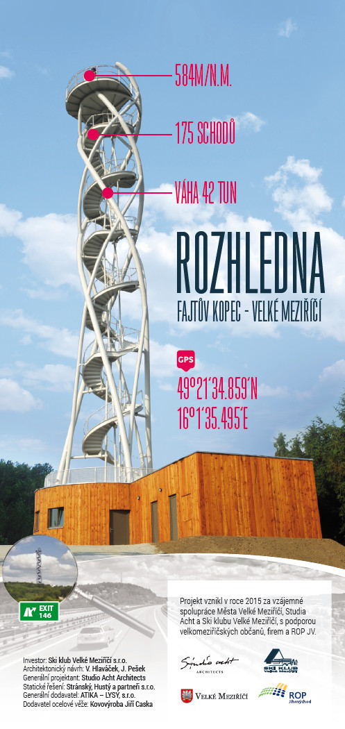 Na Fajtově kopci ve Velkém Meziříčí se nachází rozhledna, která láká turisty na krásné výhledy do širokého okolí. Zajímavostí je i to, že je postavena do tvaru šroubovice DNA. Rozhledna je vysoká 36 metrů a čítá 175 schodů. V zimním období tu pak návštěvníci najdou i úschovnu a půjčovnu lyžařského vybavení. Také si zde můžete zakoupit turistickou mapu a nechybí ani suvenýry, potraviny a balené nápoje.