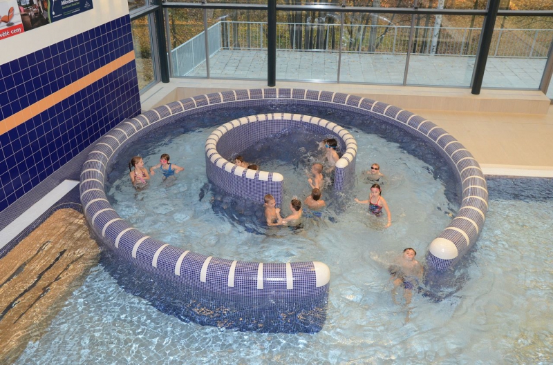 Novoměstské lázně nabízí vyžití pro malé i velké návštěvníky. K dispozici je velký plavecký bazén o výměře 25 m, který je rozdělen na 4 lajny. Dále mohou hosté využít rozlehlý saunový svět. Ten tvoří nejen sauny, ale také odpočívárna a ochlazovací venkovní bazének. Pro regenerační účely zde bylo zbudováno i fitness centrum. Návštěvníci mohou využít také doplňkových služeb, jako je např. solárium či masáže. Nechybí ani bohaté občerstvení.